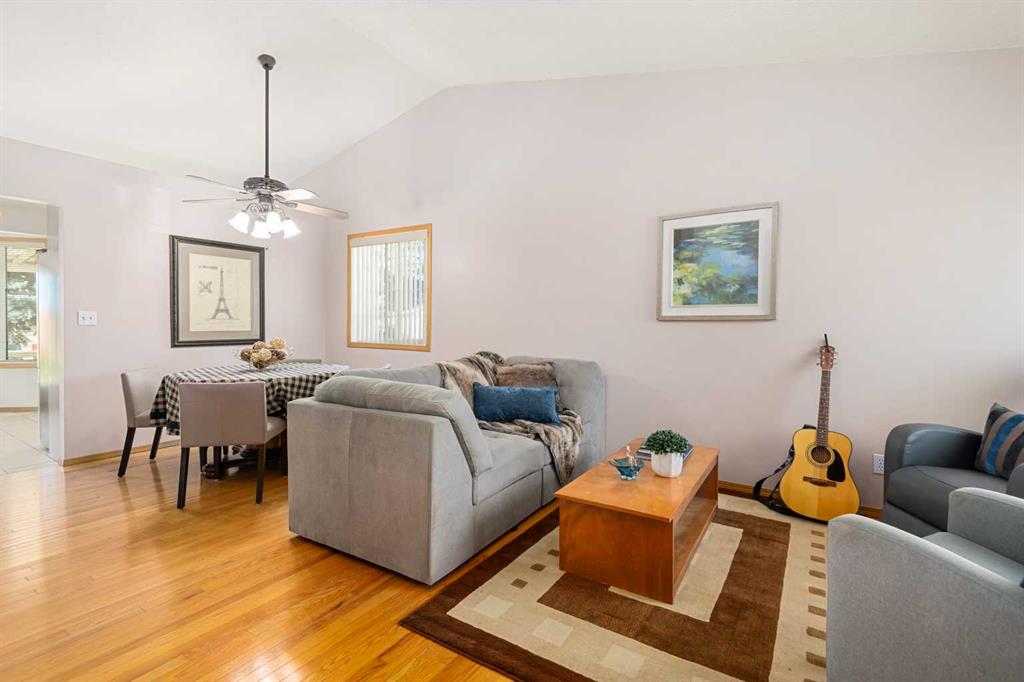 Welcome to this beautifully maintained bungalow villa, offering comfort, convenience, and an unbeatable location with sweeping prairie and mountain views. You\'re immediately welcomed to a bright and inviting living room and dining room with vaulted ceilings and a cozy gas fireplace, filled with natural light. The kitchen features a butcher block countertop, ceramic tile flooring, and newer appliances including a ThinkQ electric stove with convection oven and refrigerator. Extend your living space outdoors, with a covered pergola and natural gas hookup - The perfect place to relax and soak in your surroundings. The main floor layout is designed for easy living, with original oak hardwood floors, fresh paint (2024), and updated lighting. The spacious primary bedroom serves as a true retreat, while the second bedroom is currently used as an office and offers direct access to the garage. The main floor also includes an updated bathroom with a large walk-in shower and modern finishes, plus a convenient powder room with stacking washer/dryer. Downstairs, you’ll find a generous recreation room with new flooring, a hobby area, plenty of storage, and an additional three-piece bathroom. This villa has seen thoughtful updates throughout: