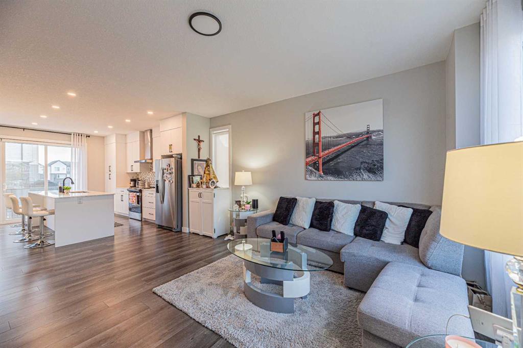 This level features a sunlit living room, a modern kitchen equipped with stainless steel appliances, a spacious kitchen island, quartz countertops, and a balcony – ideal for enjoying summer evenings. A cozy dining area provides the perfect spot for family meals, and a 2-piece bathroom adds convenience.