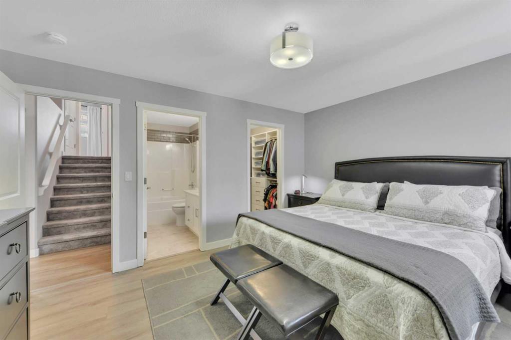 The main floor features a generously sized primary suite complete with a walk-in closet featuring custom built-ins and a luxurious ensuite. Two more bedrooms are located on the upper level, while the finished basement offers a spacious family room, 2 additional bedrooms perfect for a home office, gym, or playroom. All three bathrooms have been beautifully updated with quartz counters and contemporary finishes. Added convenience comes with main floor laundry and plenty of storage throughout.
