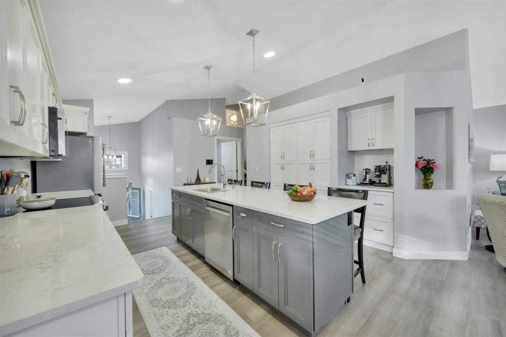 32 Cameron Close in Sylvan Lake is a stunning 5-bedroom, 3-bath modified bi-level designed for modern living in a quiet, desirable neighborhood.