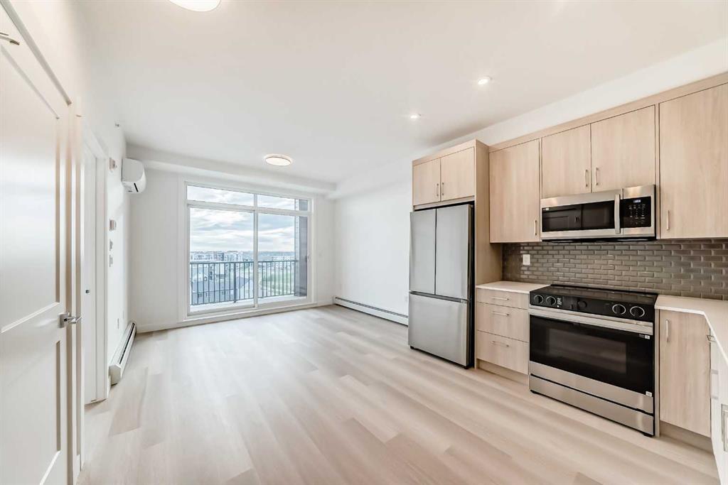 Welcome to the Curnoe 2 by Logel Homes—a well-designed unit featuring cabinets with full-height fronts, quartz countertops, and luxury vinyl plank flooring throughout, with tile in the bathroom. The upgraded kitchen includes a modern backsplash, premium sink and faucet, and comes with stainless steel appliances. Enjoy year-round comfort with air conditioning, plus the convenience of an in-suite washer and dryer. Nine-foot ceilings and large windows provide plenty of natural light. This home includes a titled parking stall and is backed by the Alberta New Home Warranty. Located close to shopping, public transit, and major routes like Crowchild and Stoney Trail, it offers easy access across the city. With affordable condominium fees, this is a great opportunity to own a well-appointed home in a convenient location. Check out the drone view of the development here: https://youtu.be/DCdZsfx5LwI?si=TmEBxtan3G_d7sVP