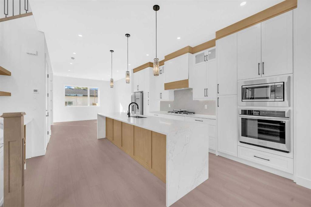 *VISIT MULTIMEDIA LINK FOR FULL DETAILS & FLOORPLANS!* IMMEDIATE POSSESSION AVAILABLE | 5 BEDROOOMS | 3.5 BATHROOMS| 10 FT MAIN FLOOR CEILING | 2 BED LEGAL SUITE | DOUBLE DETACH GARAGE. Welcome to 7617 Ogden Road, located in the historic community of Ogden this home enjoys easy access to Glenmore and Deerfoot Trails, excellent schools, Lynnwood Park, and nearby pathways along the Bow River. Ogden is perfect for nature lovers and golfers, and it is near the Inglewood Bird Sanctuary and Golf Course. Recently developed Quarry Park is only a 5-minute drive South with endless shopping and its own YMCA. The open-concept main floor with 10 ft ceiling features a chef’s inspired kitchen with ceiling-height custom cabinetry, a built in coffee station with extra storage & decorative shelves, a modern quartz backsplash, designer lighting and massive island with ample bar seating with waterfall edges. The spacious living room centres on a stunning electric fireplace and feature wall with a full-height tile and custom built-ins for added elegance. Finishing off this level, the large dining room offers a custom feature wall and 3 oversized windows, allowing lots of natural light into the home. Upstairs, the elegant primary suite features a soaring 14 ft vaulted ceiling, large windows, & a walk-in closet with ample storage. The spa-inspired ensuite is elegantly finished with tile floors, quartz countertops, dual undermount sinks, a stand-alone tub, and a stunning glass shower. Two additional bedrooms with built-in closets share a modern 4-piece bath, and a convenient laundry room with a quartz folding counter and additional storage space completes the upper floor. The 2 bedroom Legal basement suite has its own separate entrance, 9ft ceilings and separate laundry. The contemporary kitchen offers custom cabinetry, quartz countertops, and an island, while the open-concept living area makes this a desirable and functional space. Complete with separate laundry, a 4-piece bathroom, and two bedrooms. Enjoy your double car garage with extra space for storage and parking. Dual furnaces ensure comfort for both the main home and the Legal suite. Quick commutes to downtown and nearby amenities make this home ideal for those on the go. Situated in a highly accessible location, close to shopping, transit, and major highways, this property is perfect for attracting renters. Don’t miss your chance to make this incredible property your next home—contact your favorite Realtor today for a private showing!