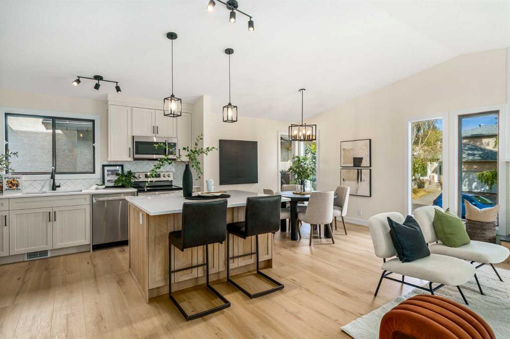 Modern, fresh, and family-ready! This newly renovated 4-level split offers 4 bedrooms, 2.5 bathrooms, vaulted ceilings and an abundance of natural light. The open-concept main level is an entertainer’s dream with custom cabinetry, a large island, and quartz countertops. Every bathroom has been updated with custom cabinets and quartz, while warm oak vinyl flooring carries throughout the home for a cohesive, inviting feel. The spacious primary suite is both stylish and functional, complete with double closets and a private ensuite. The third level features a generous rec room, 4th bedroom, and full bath, while the basement is perfectly set up for movie nights in your family media space.