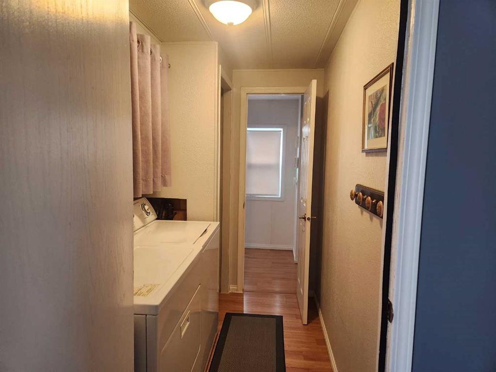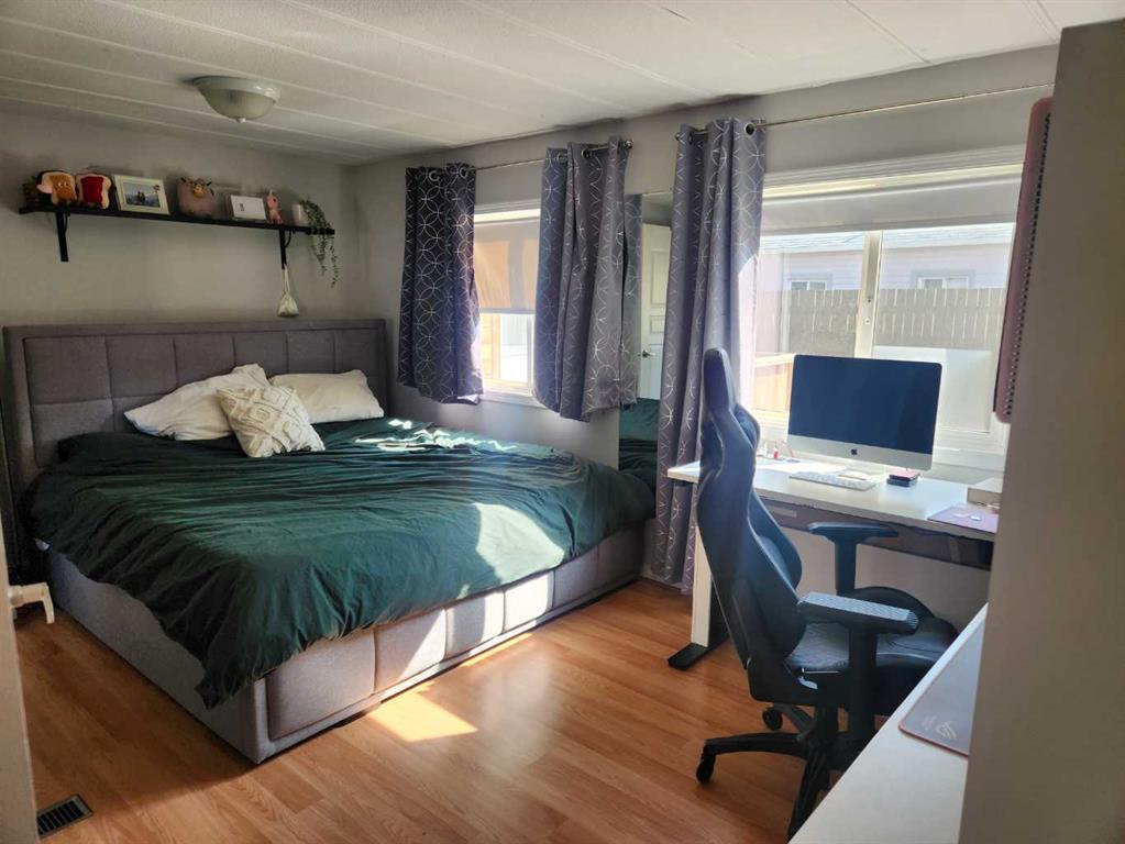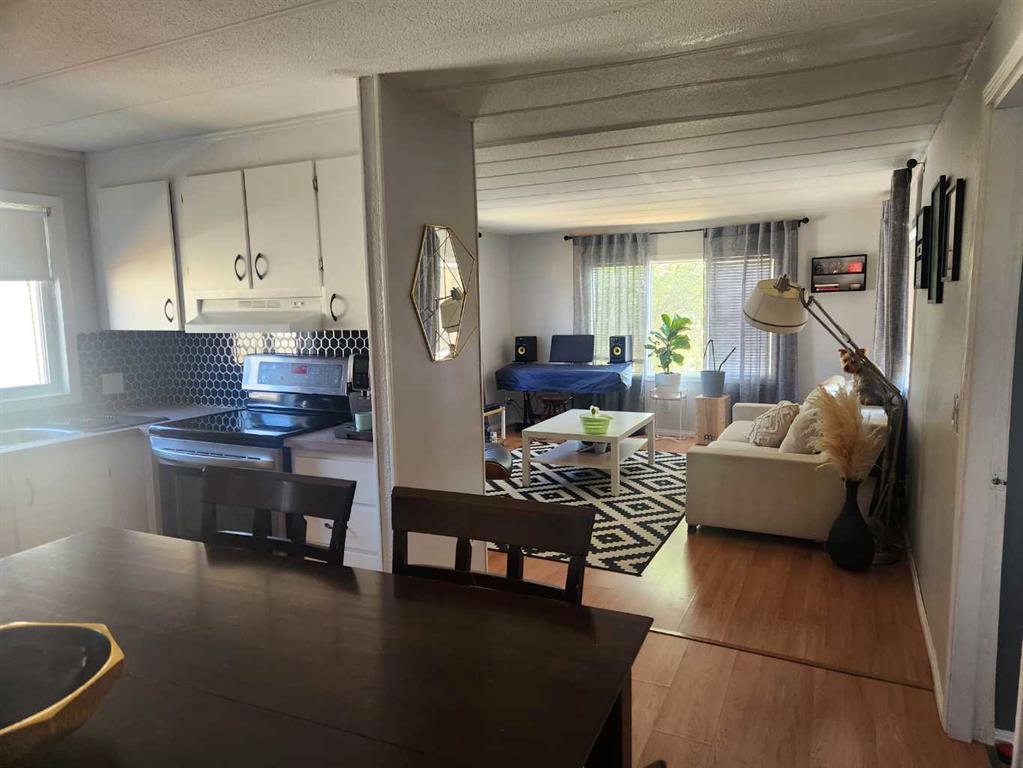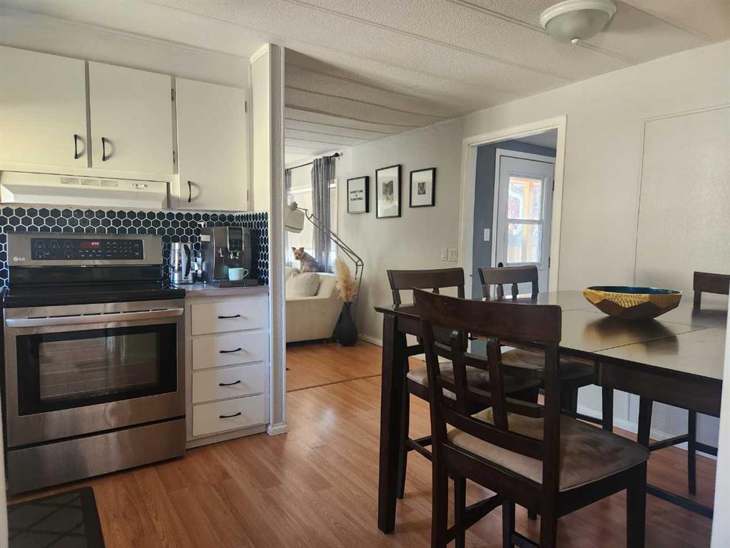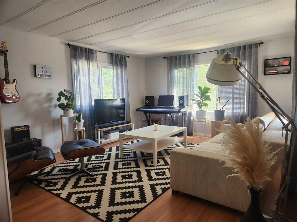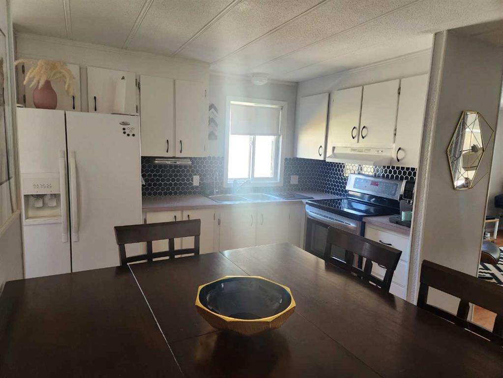 Welcome to a place that feels like home the moment you arrive. This charming and well cared for mobile home offers a wonderful mix of comfort, practicality, and value. Inside, you’ll find a bright and inviting space with 2 bedrooms that can easily be converted into 3, giving you the flexibility to grow or create the perfect office or hobby room. The modern 3-piece bathroom and air conditioning make everyday living easy and comfortable. The kitchen is warm and functional, offering plenty of room to cook, gather, and enjoy everyday family meals.