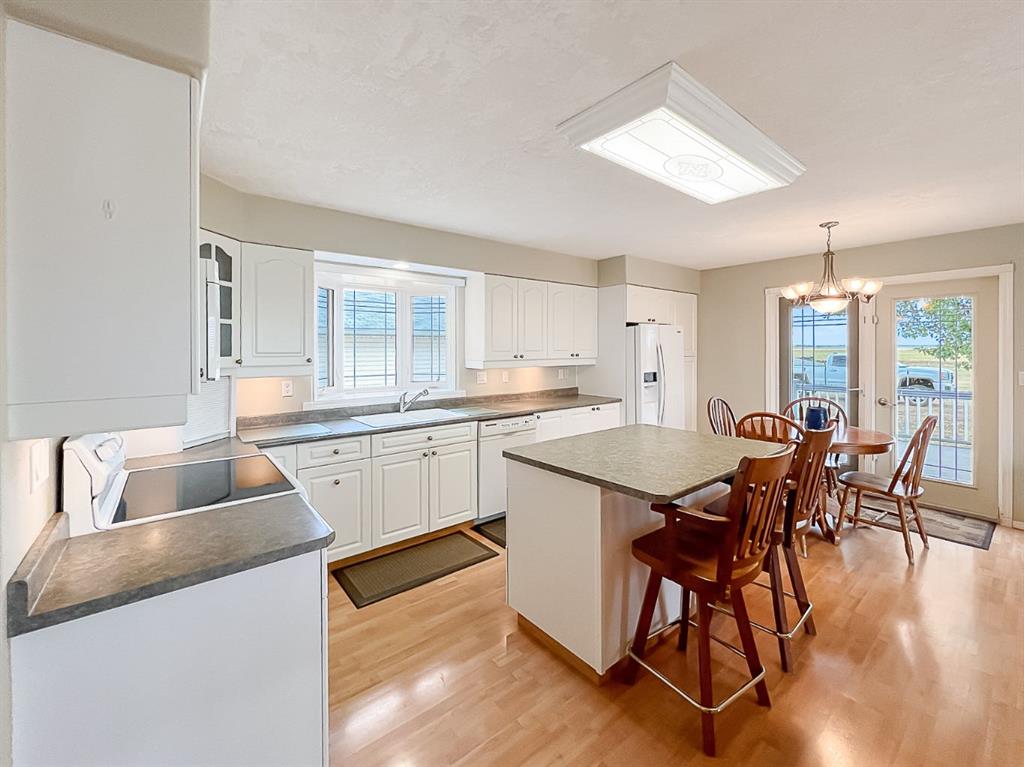 Enjoy the best of acreage living, just 8 minutes from Falher, in this move-in-ready 3-bedroom, 2-bathroom home set on 5 acres of beautifully maintained property with mature trees and plenty of room to grow. Inside, you’ll love the open-concept layout, where the kitchen, dining, and living spaces flow seamlessly together, perfect for gatherings. The dining area opens onto the deck, providing easy access to indoor-outdoor entertaining. The kitchen, fully renovated in the early 2000s, features ample cupboards, a center island with an eat-in bar, a garbage disposal, and new kitchen floors. The living room is warm and inviting, with large windows that fill the space with natural light and a cozy fireplace. Upstairs offers three bedrooms, a convenient main-floor laundry room with a sink, and a four-piece bathroom. The fully finished basement provides even more space, featuring a large family room, a bedroom or office, a 3-piece bathroom, a spacious storage room, and a generously sized utility room. Recent upgrades add peace of mind, including new shingles and a new hot water tank (2025). Outside, enjoy a large double garage, multiple sheds, a worked garden plot ready for planting, and mature landscaping that provides both shade and privacy. This property combines the peace of country living with the convenience of town, just minutes away, a rare find and truly move-in ready!