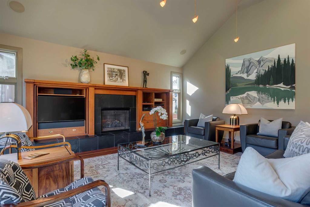 This modern-architectural family home offers an unbeatable location in the heart of West Elbow Park on a quiet street. The community centre is at the end of the block with tennis, basketball, skating, playfield and an off-leash area. Just over a block to Elbow Park School with other top schools close by. Also a quick walk to The Glencoe Club and the river pathway system for walking and biking. Large 50’ x 125’ (6243 sq ft) lot. Architect Robert Miller designed this significant home which incorporates site-specific design to capture maximum natural light and provide exciting spatial volumes. Very much a “Dwell Magazine” vibe. Over 3600 square feet total development with 4 bedrooms and 3.5 baths. Expansive main floor plan with living room and dining room at the front to host family and friends while enjoying the wood-burning fireplace, wet-bar and dramatically vaulted ceilings. Open plan across the rear overlooking the yard. Newer high-end kitchen with great workspace, storage and top appliances (Subzero, Wolf and Miele) adjacent to a casual dining space. Large family room with vaulted ceilings, gas fireplace and built ins. Real site-finished hardwood floors run throughout. A mudroom, laundry room and 2-piece powder room complete the main level. The bright upper floor holds 3 bedrooms including a large primary suite with closet wall and renovated 3-piece ensuite with shower. 2 additional bedrooms with vaulted ceilings and a renovated house bath with soaking tub. Superior lower level…a result of the newer vintage of the home. Great windows and nice ceiling height throughout the recreation room with fireplace, large 4th bedroom, renovated bath and extensive storage. Access out from the kitchen and family room to a full width deck and fenced yard with large grassed playspace. Oversized double garage off the paved alley. A rare opportunity!
