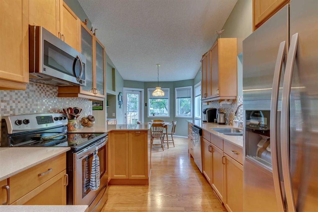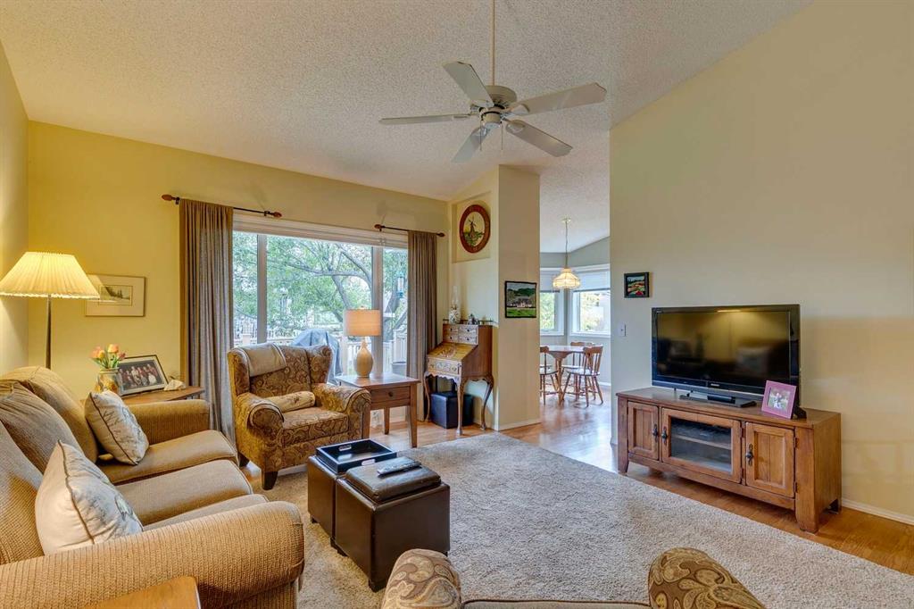 Open house Sunday October 19 2025 1-3 pm Excellent opportunity in this highly sought-after fee-simple detached bungalow villa complex in Evergreen Estates. $164/month includes snow removal and landscaping, allowing you to enjoy a carefree lifestyle in a detached bungalow. Nicely upgraded and maintained home features soaring vaulted ceilings, rich 3/4\" white oak hardwood floors, a newer kitchen with full-height cabinets, quartz counter tops, stainless steel appliances and tile backsplash. Large primary bedroom with a lavish renovated en-suite and main floor bath with an oversized 10mil glass shower, granite vanities, tile floors, under-mount sinks, and upgraded faucets. Full basement development offers a third bedroom, a huge family room with, a cozy wet bar, a full bath, a craft room/second office, and a workshop. New furnace and hot water tank, new water softener, rebuilt composite rear deck, triple pane windows with metal clad exterior frames, new gutters, newer garage door and opener, some upgraded blinds, new front and rear doors and more. This property has been professionally maintained, and mechanical components have been serviced regularly since the owners purchased the home. Walk to Fish Creek Park in seconds from this home or enjoy the amazing network of community pathways. Great access to the ring road, shopping and schools. Evergreen Estates is a truly \"Estate\" home community with only single-family homes, large lots, very low density and mature trees throughout the community. The sellers have only occupied the home for seven months a year since they have owned it.