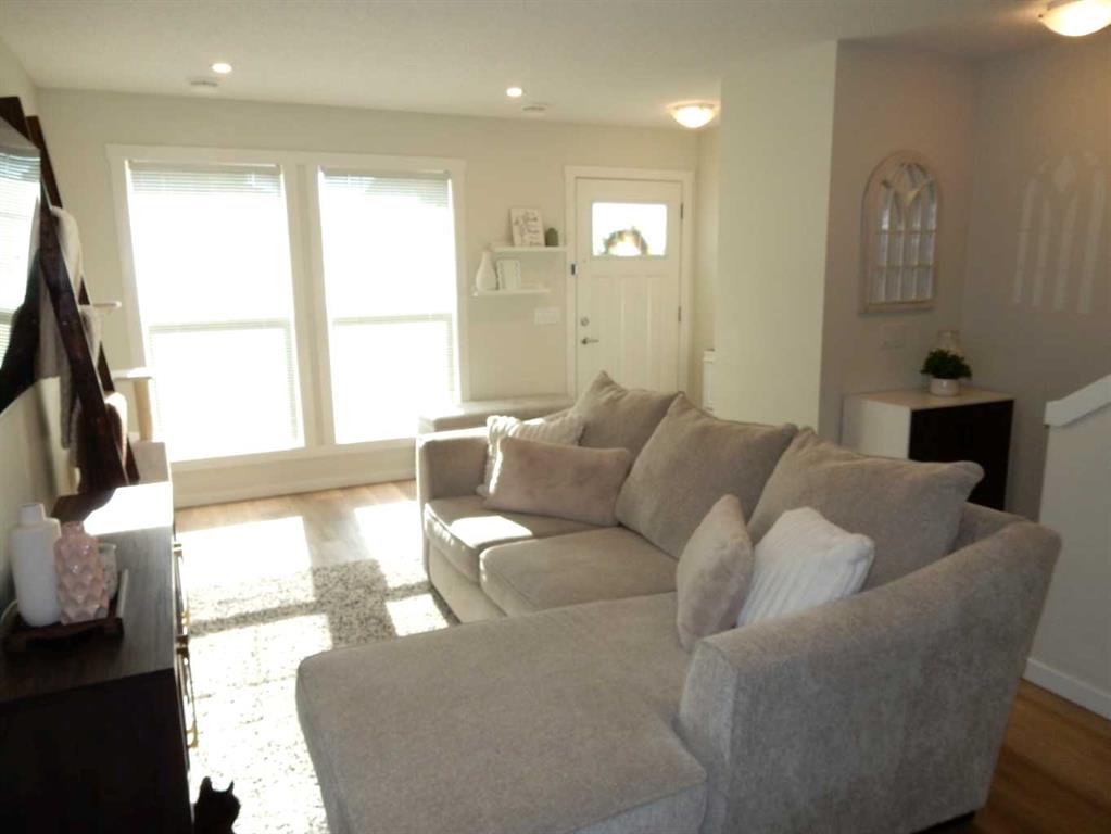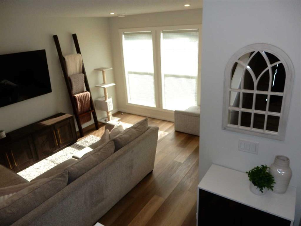 (PRICE HAS BEEN ADJUSTED) Reside in the heart of Riverstone in desirable Cranston! Here you will find an exceptional 3 level home nestled in the river valley! Only minutes to nature with breathtaking Fish Creek Parks bike & walking paths, picnics along the Bow River and the best fishing in Calgary! This fully air conditioned home is in immaculate condition & it shows 10/10 on every crafted level! This modern open concept design features an abundance of natural light thru-out w/an eye pleasing neutral colour palate. Steps from the front door, you are welcomed by a Great Room that flows seamlessly into the dining area then finally crests into the Kitchen where the Chef can create some culinary delights! The modern appliances, full cabinetry, pantry, & sizeable quartz Island will accommodate a healthy guest list. Steps leading down from the kitchen, you will find a low maintenance yard for your BBQ/kids/pets/Inlaws? Completing the main floor is also a nice 2pc bath, under stair storage, & a storage nook. One level up.... A substantial master retreat awaits you! Showcasing large windows, his/her closets, 3pc ensuite ,& plenty of room for a King Size bed and other pieces. Down the hallway you will encounter the 2nd bedroom, beautuful and bright, big closet, and a most a generous size as well. Another 4pc bath with soaker tub, linen closet and upper level laundry finish out the 2nd level.... But wait!! There\'s more!! On Level 3 you can create your own flex room !! Office/media/bar/playroom/exercise/yoga/massage/gym??? Also, the attached great reveal ...........A top tier outdoor balcony with views of the surronding hills, & seating for your company to enjoy a portable firepit and a glass of vino!! Relax and let your mind wander. Residents of Riverstone through the HOA also have access to Century Hall. Just minutes away you will find skating, Tennis courts, a gym for shooting hoops, and a fantastic water/splash park for the kiddos! What are you waiting for?? Live in the lifestyle that combines nature, and community all in one. Access to Stoney, Deerfoot, Schools, shopping, transit, South Health Campus, restaurants, and more. Have a look see!, You wont be disappointed. I almost forgot.... Assigned parking stall in front of home, off street parking available and guest parking as well. *** Cats ok, Dogs ok !!!*** Bring your pets!!!