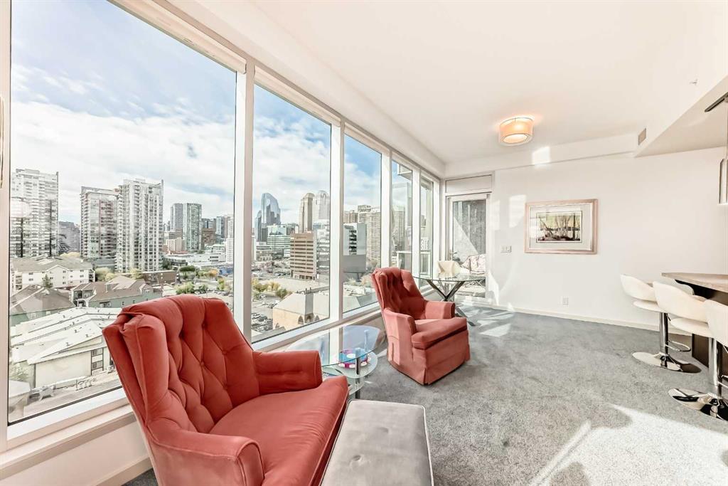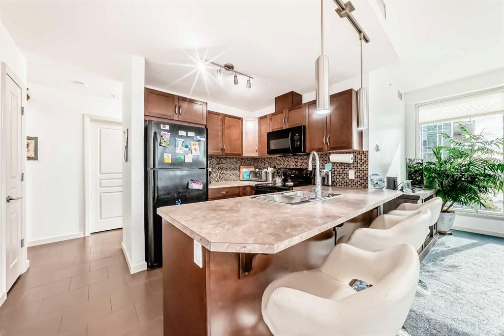 SOUTH WEST CORNER SUITE 2 BDRM, 2 BATH WITH VIEWS OF THE MOUNTAINS. Welcome to the Alura building, a modern gem located in the heart of Victoria Park within Calgary\'s vibrant Beltline district. You will not be disappointed with this condo and its location. Almost 800 sq ft, excellent open floor plan with bedrooms separated, 9-foot ceilings, luxury vinyl plank flooring, floor-to-ceiling shaded windows, and a large balcony. Enjoy sunsets and surprisingly quiet evenings as the windows in this building are excellent and provide superior soundproofing. The kitchen is very functional and has plenty of counter and storage space. The package includes a titled underground parking stall, a dedicated storage locker in the parking area, and access to visitor parking. Residents benefit from premium amenities, including an on-site fitness center, resident lounge, full-time concierge service, and round-the-clock security. Ideally located within walking distance of downtown, 17th Avenue, Stampede Park, Starbucks, Shoppers Drug Mart, Sunterra Market, and the Victoria Park C-Train station, it also offers quick access to scenic river pathways for cycling and walking. Experience the best of 18+ living.