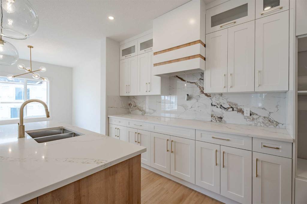 This home is beautifully finished with ceiling-height cabinets, quartz countertops, upgraded lighting, vinyl plank flooring, tile and carpet flooring, wood shelving in closests, and upgraded exterior stonework. Added value includes GST (rebate to builder), new home warranty, a 13\' x 9\' rear deck, front sod + tree, and a $5,000 appliance allowance.