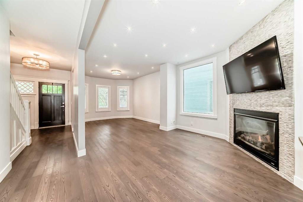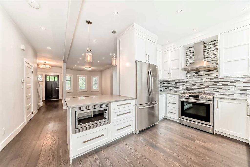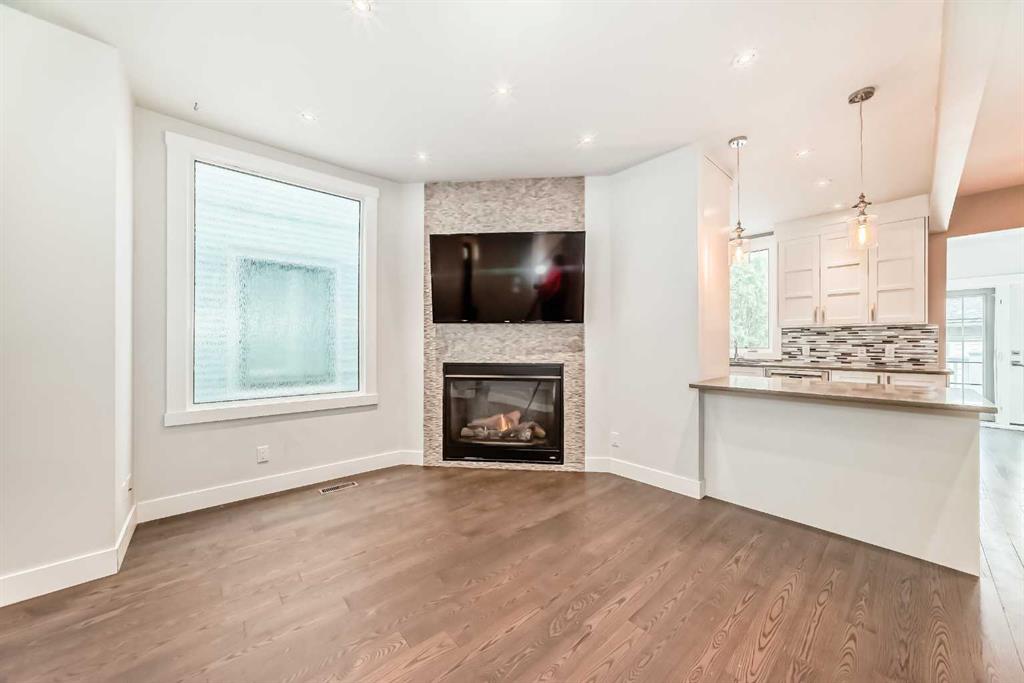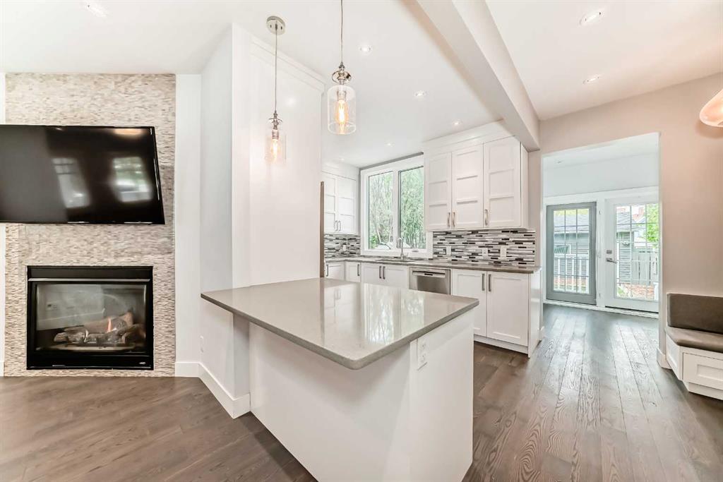Experience contemporary living wrapped in old-world heritage character with city skyline views! This fully renovated 3-bedroom 3-bathroom two-story with double garage in the heart of Kensington/Hillhurst boasts over 1800sf of finished interior living space and over 500sf of outdoor patio space. This uniquely special property will grab your attention the moment you arrive! Walking up the heritage front veranda and opening the solid wood door, you find a perfect blend of subtle historical elements mixed with modern development. Key features include real wood floors, period correct vinyl windows fashioned after the original with door style wooden louvres, a contemporary gas fireplace, designer lighting, quartz countertops, stainless steel appliances with a gas range and pot tap above the stove. Bringing this main level up to Modern Standard is the addition of a kitchen bar/island, 2-piece bathroom & rear mudroom, adding much-needed storage and space while keeping in character with its heritage roots. Continuing up the original staircase, you will find yourself at a large landing, leading to two spacious secondary bedrooms, a modern 5-piece bath with dual vanities & plenty of storage. Finishing off this level is the sunny south-facing primary suite with a walk-in closet (including laundry) and a door leading to the upper private balcony, where you will enjoy overlooking the surrounding mature neighbourhood and cityscape views! The flex-use lower level completes this property with a spa-inspired four-piece bath featuring heated floors, a jetted soaker tub and a massive walk-in shower featuring bench seating, rain head and separate adjustable shower head. Adding to the potential uses for this lower space is an office nook and a TV room with storage cabinets. (This entire lower level could also double as a private primary bedroom.) Some of the things you can\'t see at first glance are the steps to mitigate any water entering the basement (completely waterproofed with membrane and a TripleSafe Sump Pump System & Dehumidifier), ensuring you are worry-free for years to come. Lastly, the rear garden provides a true oasis from the surrounding homes, with its 20ft bushes, raised garden beds, 200sf wrap-around deck and newer double garage. The amazing neighbourhood provides restaurants, shopping, transit, bike paths and downtown just a few steps out your front door. Don\'t miss this one, book your viewing today!