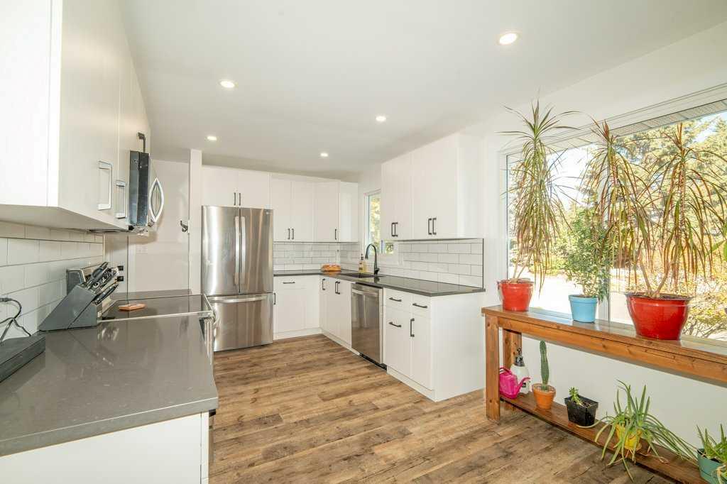 Home renovations include: New windows, drywall, paint, floors, trim, doors, light fixtures, kitchen cabinets, appliances, furnace, HWT, new plugs and switches, some updated plumbing.