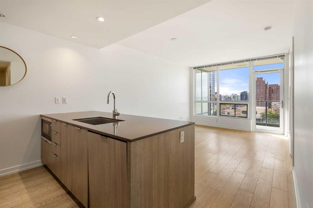 Luxury living in downtown Calgary! One of the Best Locations in the city! This modern one bedroom apartment in the Outlook at Waterfront, on the 12th floor and facing West! With great views of the city, Bow River and Rocky Mountains! Only steps away from the extremely popular Prince Island Park, and the future Green Line C-train Station. Great restaurants and coffee shops nearby! Building is full of amenities, such as Meeting Rooms, Party Room, Gym, Bike storage, Lockers, and a beautiful Court Yard! Friendly full-time concierge staff always ready to help. Brand new Washer, Dryer and Microwave. Perfect for someone looking for stress free downtown living, or a great investment!
