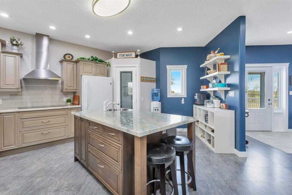 Just 3 minutes east of Stettler, this 2-acre family acreage offers the perfect balance of country privacy and town convenience. From the moment you arrive, pride of ownership is clear - not only in the home, but across every corner of the property. Outdoors, it’s all about space to play, relax, and gather. A fully finished powered playhouse, mini basketball court, play structure, garden space, and firepit retreat create endless opportunities for family connection. The property is fully fenced and gated with dual entrances, offering both privacy and practicality. Mature trees, new plantings, and natural brush with mowed pathways bring a secret-garden feel, while a rock bed and bridge feature, expansive lawn, screened-in porch, separate workshop, and garden shed complete the outdoor retreat. With municipal water to the home and well water for all exterior use, the acreage is as functional as it is beautiful. Inside, the main floor welcomes you with bright, open living spaces designed for ease and comfort. The modern kitchen with island and pantry flow seamlessly into the dining are and living room with high ceilings and a cozy wood-burning fireplace, not to mention access to your screened in deck and yard. The primary suite includes a walk-in closet and private 3-piece ensuite, while an additional bedroom and main bathroom provide convenience for family life. Main-floor laundry adds to everyday practicality as well. Downstairs, the fully finished basement expands the living space with two more bedrooms, an additional bathroom, and a large open family/rec area - perfect for movie nights, kids’ play, or hosting friends. Built in 2009, this home was constructed with an ICF (Insulated Concrete Form) foundation, providing exceptional strength, durability, and year-round comfort. Paired with a geothermal heating and cooling system that regulates temperatures efficiently - keeping utility costs lower while offering a consistent, eco-friendly climate. Together, these features ensure a home that’s not only modern and welcoming, but also built for long-term sustainability. This acreage is designed for family living, memories, and more - not just a property, but a place to grow, gather, and create a lifestyle you’ll treasure for years to come.
