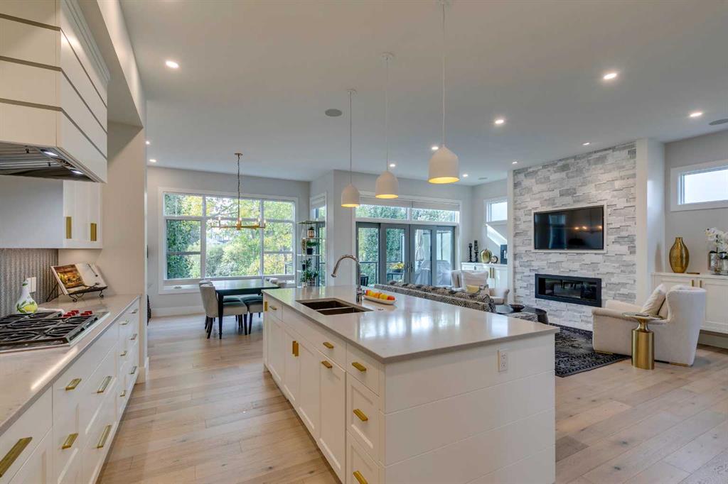 Welcome to an inner-city English garden living - with 2,847 sq ft of luxury situated in the vibrant community of Bankview. Offering 5 bedrooms throughout, this semi-detached walk-out home is perfect as an executive and/or family home. Built by luxury builder Grandscape Homes with superior finishes and completed by interior designer Denise Panagakos, this stunning home blends contemporary design with comfortable living finishes. The S & W facing main level has 10 ft ceilings, a two-storey front foyer and floor to ceiling windows, flooding the home with natural light. The gourmet kitchen has a large island with breakfast bar, pantry plus amazing storage. Top end appliances include a 5 burner Wolf Cooktop, dual Wolf wall ovens (one convection) and an integrated Sub-Zero fridge. The open living/dining area with gas fireplace leads to a south facing balcony through large sliding doors. On the 2nd floor, French doors lead to the private primary suite that occupies the entire level. Complete with a gas fireplace, a large walk-in closet, and a north facing balcony with downtown views. The 5-pc ensuite has a soaking tub, double vanity, a large steam-shower, and heated flooring. The 3rd level has 2 large bedrooms, both with walk-in closets. This floor also includes a 5-pc bathroom and a laundry room with sink and storage. On the 4th level is a very large loft bedroom/suite with downtown views and a 4-pc bathroom - perfect as a bedroom, office space or living area. The fully finished walk-out level has heated polished concrete floors, a 5th bedroom or office, and a 3-pc bathroom with an oversized walk-in shower. This level is the perfect entertaining area with a wet bar and wine room off the sitting area and walk-out covered patio. The sunny south facing back yard is professionally landscaped with plenty of shrubs and trees creating a private and quiet oasis. Backing directly onto a city park the home\'s multiple outdoor living spaces will bring the outside in, either from the main living area balcony, or the large lower patio. Throughout the entire home you will find custom millwork cabinets providing ample storage. This clean air home has high efficiency heating/ventilation and includes central air conditioning. The double attached finished garage also has heated floors. Its minutes to downtown and walking distance to the shops, restaurants and amenities of either 17th Avenue or Marda Loop - also close to Mount Royal, Downtown Core, University of Calgary, Foothills Hospital Campus, SAIT & Kensington. Experience both quiet park and vibrant inner city living & book a showing with your realtor today!