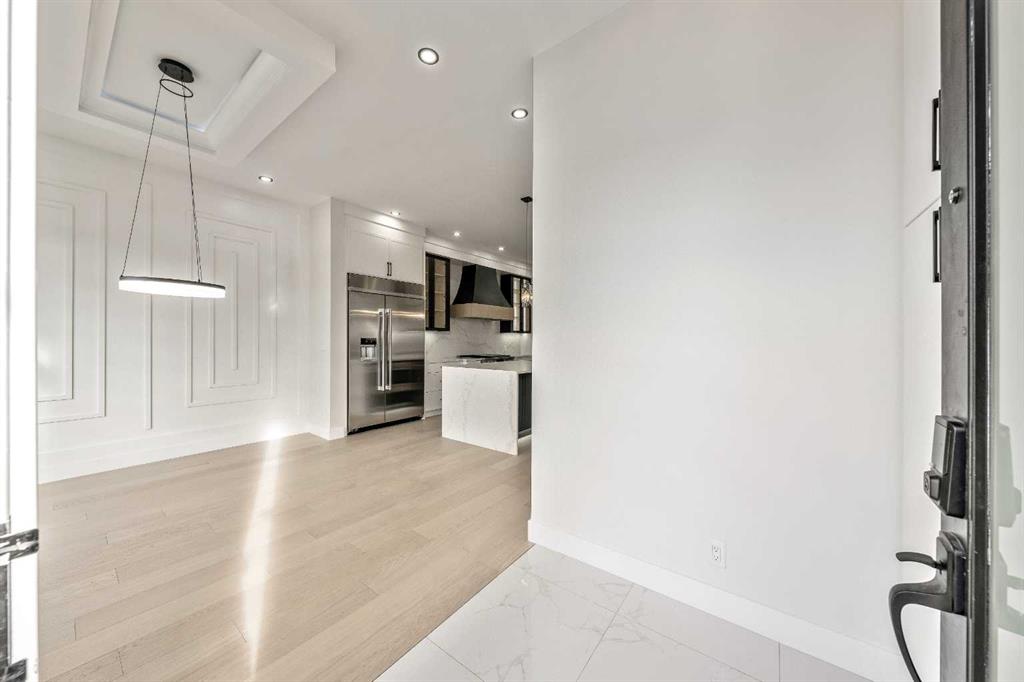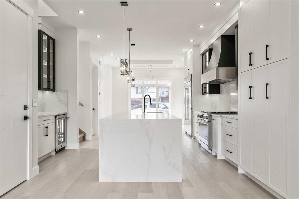 Welcome to the lap of luxury in Rosscarrock. This beautifully appointed infill (construction completion in early 2026) is within one kilometre walking distance to Westbrook C-train station, Westbrook mall, E-MART, Walmart, Starbucks, and many pubs/restuarants which makes it an ideal location with its 2 BEDROOM BASEMENT LEGAL SUITE. Have Kids with allergies? NO CARPETS THROUGHOUT. The Main floor has 10’ CEILINGS, wide front entrance, an enormous dining area to fit a harvest table, luxurious kitchen with quartz backsplash, 14\' long island with a magnificent quartz countertop and dual waterfall feature and cabinet doors on both sides (plenty of storage space for all your small kitchen appliances), a show-stopping \"COMMERCIAL STYLE\" 36 INCH GAS RANGE, Impressive 48\" FRIDGE and High-end BEVERAGE COOLER in the seamlessly situated coffee bar that is open-to-above. The Living room has an opulent 50\' GAS FIREPLACE with built-ins and sliding patio doors that opens to a maintenance-free, composite plank party deck. The mud room has sitting bench and hangers, and will lead a conveniently located powder room. The highlight of the top floor is the Massive Primary bedroom with vaulted ceiling, spacious WALK-IN HIS & HER closets and a spa-like ensuite which will have a tiled STEAM SHOWER, double vanity, and a free-standing tub. The top floor is completed with a laundry room with sink, two bedrooms, one which has \"cheater-ensuite\" access to the common 4-piece bathroom. Every main and top floor bathroom has electric in-floor heating with their own thermostat, 200 AMP SERVICE TO HOUSE ensures there is enough power for house and a legal basement suite. The BASEMENT HAS A SEPARATE SIDE ENTRANCE, access to the furnace/mechanical room is in the common area so basement tenants do not need to be bothered/notified if you have to access the mechanicals. The basement ceiling has sound reduction features in the ceiling, hookups for a private laundry, kitchen and living room (with a gas fireplace), ITS OWN FURNACE and roughed-in in-floor heating. Did I mention TRIPLE PANE WINDOWS THROUGHOUT which are more energy efficient and improve sound insulation within the house? Other features include GFCI OUTLETS BEHIND EVERY TOILET (required for heated bidets), 200 AMP service in home, HEATED (also insulated, drywalled and painted) GARAGE WITH 200 AMP SERVICE with an EV CHARGING RECEPTACLE suitable to connect a Level 2 charging station. Photos are from a recently finished project. Taxes on completed home not yet assessed. Measurements taken from building plans and interior photos from a recent project completed by builder that will have similar finishings.