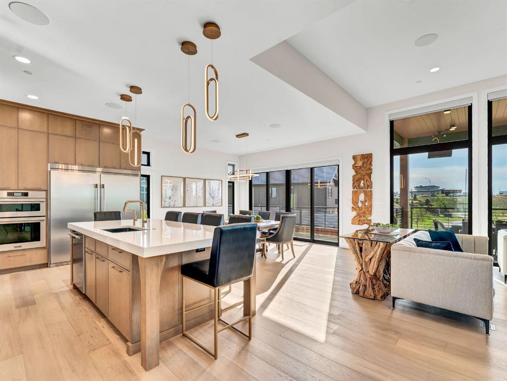 This gorgeous walk-out bungalow combines comfort and style in all the right ways. With five bedrooms and three and a half bathrooms, there’s plenty of space for family and guests. Step inside and you’ll immediately notice the quality throughout. The home is filled with high-end finishes, including warm rift oak cabinetry, designer lighting, sleek flooring, and a premium sound system throughout the home and decks. The open-concept design makes the most of the natural light and those amazing views. The kitchen is both functional and stunning, featuring premium appliances, generous counter space, and cabinetry that brings a touch of modern elegance. The primary suite feels like a retreat, with a spa-inspired ensuite that’s perfect for unwinding. Outside, the luxe exterior finishes make this home stand out from the moment you arrive. And with walk-out access to the yard, you’ll love the seamless blend of indoor and outdoor living. Whether you’re hosting friends or enjoying a quiet evening, this home makes it easy to relax, entertain, and take in the views.