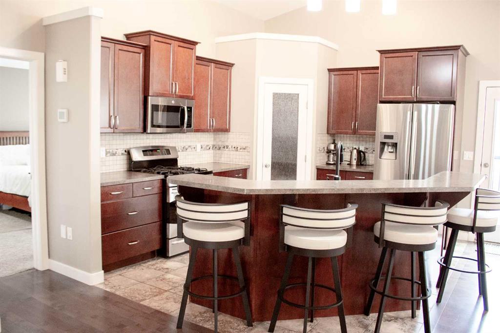 This Whispering Ridge home is built for life in Grande Prairie, where summers are best spent outdoors and winters call for comfort. The yard is made for summer with tasteful landscaping, full fencing, irrigation, and no rear neighbors. Step out onto the deck to take in the incredible view, or walk out to the stamped concrete patio where you can relax or fire up the grill while the kids and pets play. Inside, the main floor welcomes you with soaring ceilings and a stunning stone gas fireplace. The kitchen features a gas stove, and the oversized primary bedroom retreat is a spa-like escape with a walk-in closet and ensuite. When the chill sets in, you’ll love the heated 26x24 garage with hot and cold plumbing and an additional natural gas line, perfect for vehicles, projects, or even a future workshop. The bright basement adds even more living space with another full bathroom, a family room, and a flexible bonus area ready to become the ultimate den, hobby room, oversized bedroom, or suite, complete with its own fireplace and wet bar. Everyone will enjoy the convenience of on-demand hot water, central A/C, and the unbeatable Whispering Ridge location close to parks, trails, schools, and lower taxes. Book your showing today.