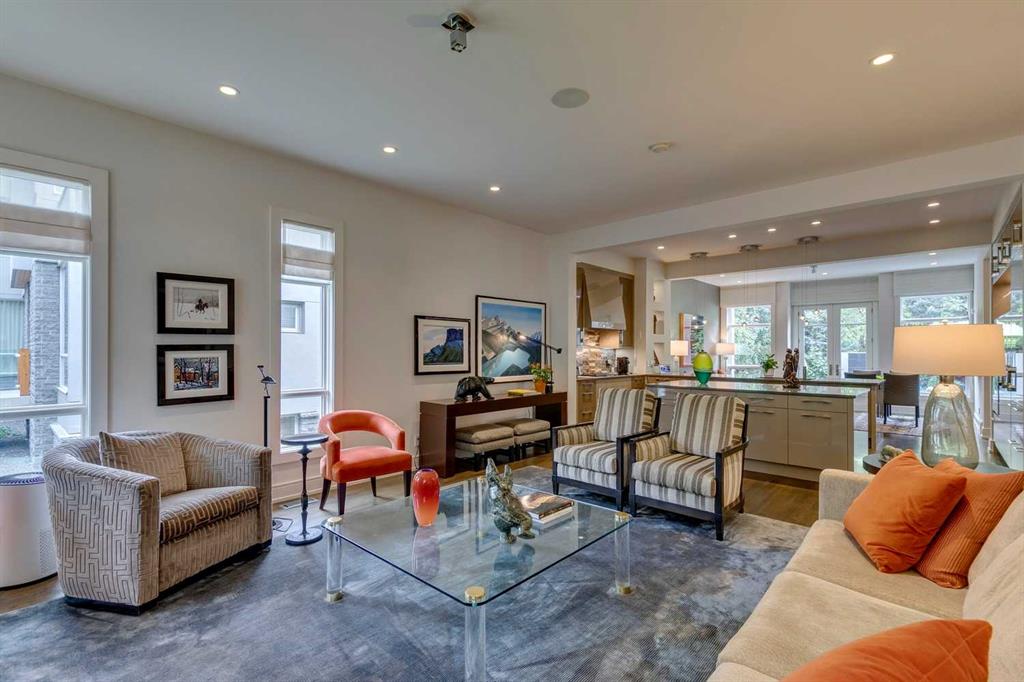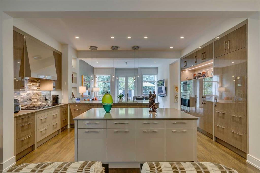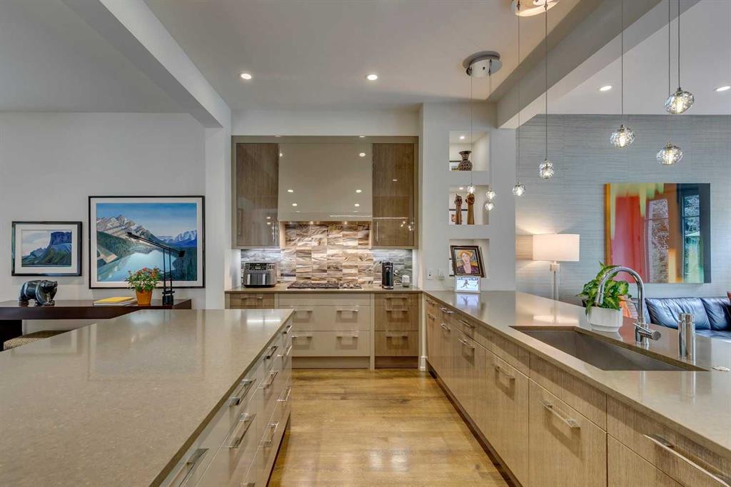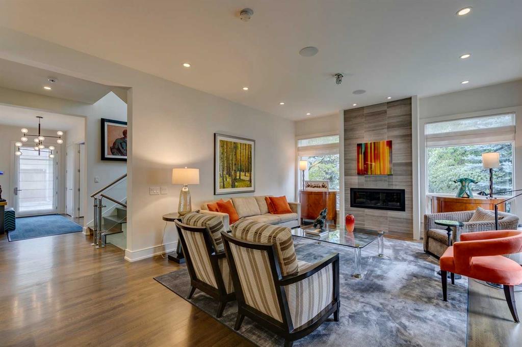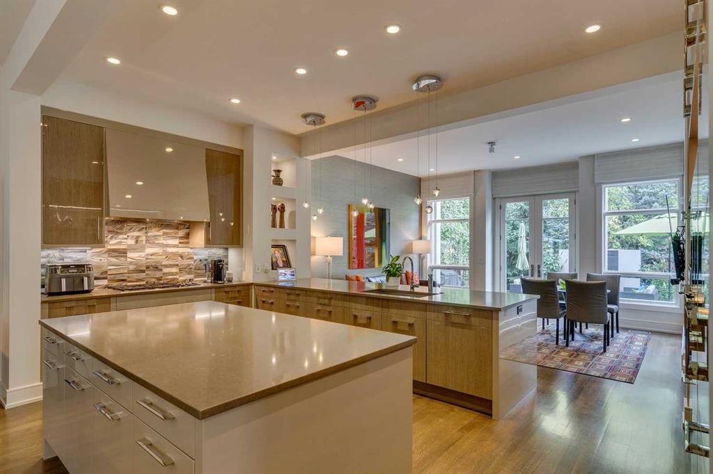 Welcome to this exquisitely crafted home, perfectly positioned on an oversized lot in the heart of Elbow Park, one of Calgary’s most established and desirable communities. Built by Empire Custom Homes, this residence offers over 3454.81 square feet of timeless design, thoughtful functionality + understated elegance. From the moment you step inside, the home reveals its careful attention to detail. A gracious front entry sets the tone, while a beautiful dining room just off to the left offers a refined space for gatherings. Beyond, the open-concept layout unfolds with a lovely formal living room anchored by a gas fireplace, creating a warm and inviting retreat for Calgary’s winters. At the heart of the home lies a chef’s kitchen designed for both beauty + performance, featuring Wolf, Sub-Zero + Asko appliances, abundant cabinetry, a generous island + a breakfast bar. This central gathering space flows effortlessly into the adjoining family room, ideal for relaxed evenings or casual entertaining. The tucked away wine-bar + a well-planned mudroom with access to the private yard and oversized double garage complete the main floor, blending everyday convenience with elegant design. A striking open staircase invites you upstairs, with the large floor-to-ceiling windows flooding the home with natural light. The upper level boasts a tranquil primary suite with an expansive walk-in closet + spa-inspired ensuite. Three additional bedrooms, each with their own ensuite, provide rare comfort + privacy for family or guests. A wide central hall enhances the sense of openness + leads to a private balcony to complete the upper level. The theme of refined living is continued on the lower level with a a spacious media room + highly functional wet bar, flexible space for a gym or playroom, a fifth bedroom + a full bathroom. Outdoors, mature landscaping frames a private patio complete with a fireplace, a perfectly designed space for year-round entertaining + quiet evenings alike. The additional green space offers room for family gatherings, children at play + moments of serenity. The combination of scale, craftsmanship + location make this Elbow Park residence a truly rare opportunity. From its proximity to top-rated schools, community parks + the Glencoe Club, to nearby river pathways, vibrant shopping + dining districts, this is a home that captures the very best of inner-city living.