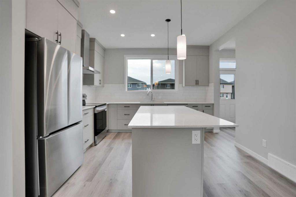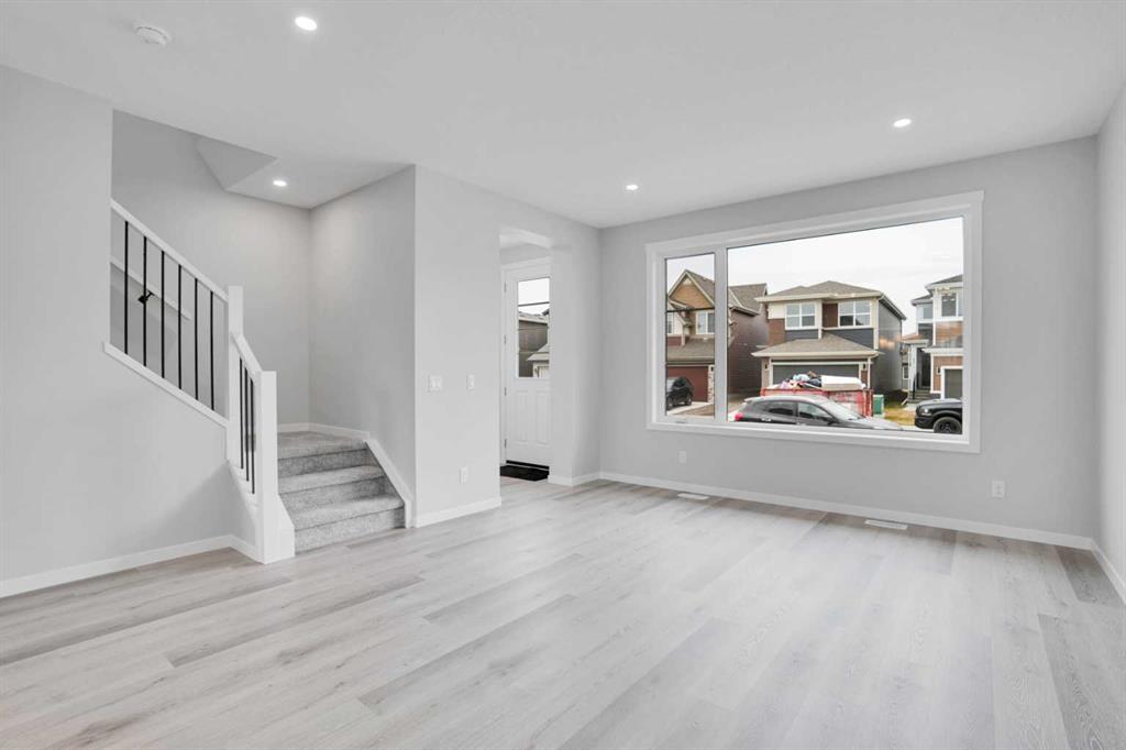 Welcome to this stunning brand-new home built by Anthem Homes in the highly desirable community of Cornerstone, where every amenity is at your doorstep and major highways are easily accessible. The striking modern front elevation with composite siding creates an impressive first impression. Inside, the open-concept main floor features a bright living area with large windows, a spacious dining area, a convenient 2-piece powder room, and a chef’s kitchen equipped with stainless steel appliances, ceiling-height cabinets, a chimney hood fan, and an oversized island perfect for gatherings. Upstairs, you’ll find three generous bedrooms, two full bathrooms, and a laundry area. The primary suite is complete with its own ensuite and walk-in closet. The basement, with its side entrance, 9-foot ceilings, two large windows, and rough-ins for both a bathroom and a kitchen, offers excellent potential for future development.