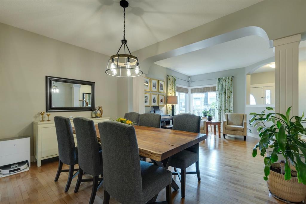 Welcome to this exceptional family home that blends timeless style, modern comfort, and thoughtful design in every detail. With 5 spacious bedrooms, 3.5 bathrooms, a fully finished walkout/walkup basement, and a rare triple-car garage, this property is designed to exceed expectations for families of every size. From the moment you arrive, you’ll be charmed by the home’s inviting covered front porch, the perfect vantage point to relax and watch children safely ride bikes or play along the quiet, family-friendly street. Step inside and you’ll be impressed by the meticulous care this home has received—immaculate hardwood flooring, elegant finishes, and an open-concept layout that seamlessly connects the main living spaces. At the heart of the home, the chef-inspired kitchen is a dream come true, featuring rich granite countertops, high-end stainless steel appliances including a gas range, a convenient eating bar, and abundant cabinetry. The kitchen opens directly into the sun-filled great room, highlighted by a cozy fireplace and expansive windows that showcase your sunny west-facing backyard. Adjacent to this space, you’ll find a formal dining room for hosting memorable gatherings, as well as a private main floor den, ideal for a home office or study. Upstairs, the layout is designed with family living in mind. There are four generously sized bedrooms, including a luxurious primary retreat, as well as a bright and versatile bonus room that can serve as a playroom, media lounge, or quiet reading or studying space. The professionally developed lower level offers even more living space, boasting an additional bedroom, a stunning full bathroom, a stylish wet bar, and custom built-ins that provide both functionality and charm. A second fireplace enhances the ambiance, making it a warm and inviting area for entertaining or family movie nights. Most impressively, the lower level also features 7.4 Atmos sound system wiring in the dedicated theatre space, creating the ultimate cinematic experience right at home. Step outside through the walkout/walkup basement entrance into your beautifully landscaped and fenced backyard—a private oasis perfect for summer barbecues, gardening, or simply enjoying the outdoors. Complete with a large patio area and deck for entertaining. This home truly combines every desirable feature into one remarkable package: space, elegance, modern upgrades, and thoughtful details at every turn. It is not just a house, but a place to create lasting memories for years to come. Located in desirable Springbank Hill, this home is close to Aspen Landing Shopping Centre, Westside Recreation Centre, and top schools like Griffith Woods and Ernest Manning. The nearby 69 Street LRT offers an easy commute downtown, while parks, playgrounds, and walking paths surround the community, blending natural beauty with everyday convenience.