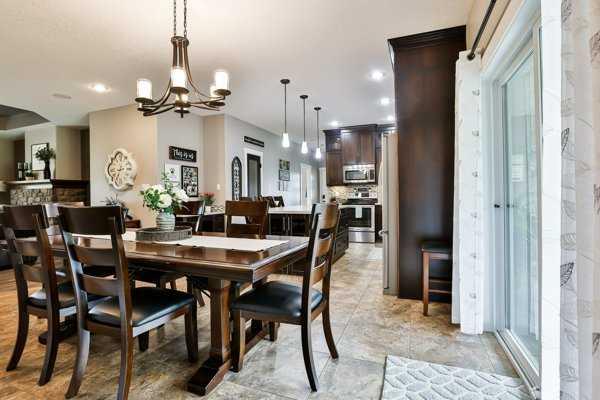 The heart of the home is the expansive kitchen, complete with a massive island, walk-in pantry, stainless steel appliances, and a built-in desk area. The adjoining dining space offers plenty of room for a large table with the flexibility to expand for gatherings. The primary suite is a true retreat, featuring a huge walk-in closet and a gorgeous ensuite with double sinks and a spacious walk-in shower.