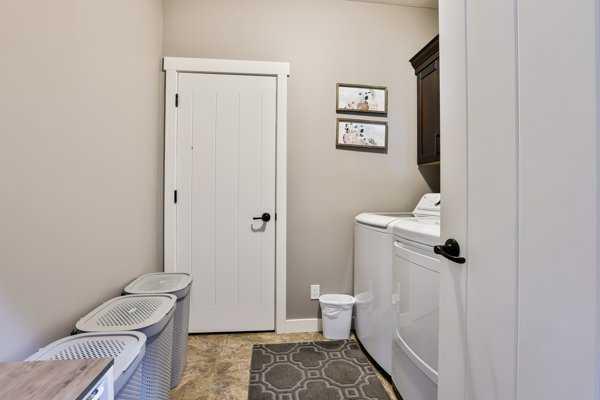 Functionality meets versatility with the attached double garage and a well-appointed mudroom, along with a dedicated laundry room featuring built-in cupboards. The impressive 40’ x 50’ heated shop is fully equipped with a bathroom with shower, laundry area (washer), central vacuum, office space, tool room, and extensive storage—ideal for hobbyists or business use.