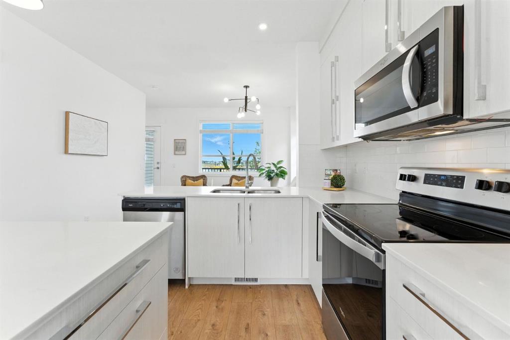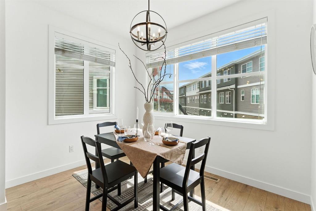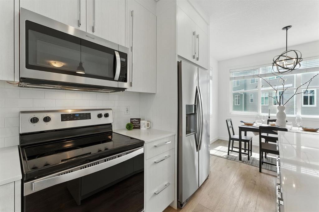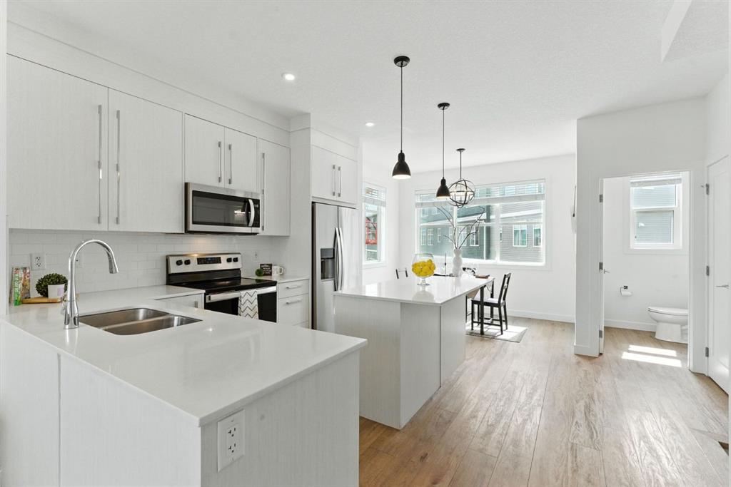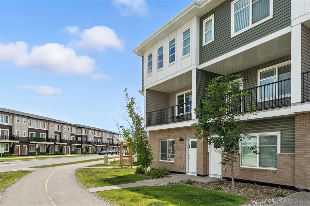 Welcome to comfort, convenience, and contemporary style in the vibrant community of Cornerstone! This well-appointed 3-bedroom, 2.5-bathroom row townhouse offers everything you need for modern urban living. Step inside to a spacious entryway and access to the double tandem garage, complete with ample storage space, perfect for outdoor gear, seasonal items, or a hobby space. Upstairs, the bright and open-concept main floor features a beautifully designed kitchen with quartz countertops, plenty of cabinetry, stainless steel appliances, and seamless flow into the living and dining areas. Large windows flood the space with natural light, while the private balcony with gas BBQ hookup is ideal for entertaining or relaxing. A convenient 2-piece powder room completes this level. On the third floor, you’ll find a tranquil primary suite with a 4-piece ensuite, a generous walk-in closet with a window, and two additional bedrooms perfect for kids, guests, or a home office. Another full 4-piece bathroom and upstairs laundry provide total functionality and ease. This unit is ideally located with visitor parking conveniently situated right behind for your guests. Enjoy all that Cornerstone has to offer, including nearby schools, shopping, restaurants, parks, playgrounds, and future LRT access. With quick connections to Stoney Trail, Country Hills Blvd, and Deerfoot Trail, you’re never far from the airport, major routes, or a quick getaway out of the city. Make your move to Cornerstone, where the corner of comfort and convenience meet.
