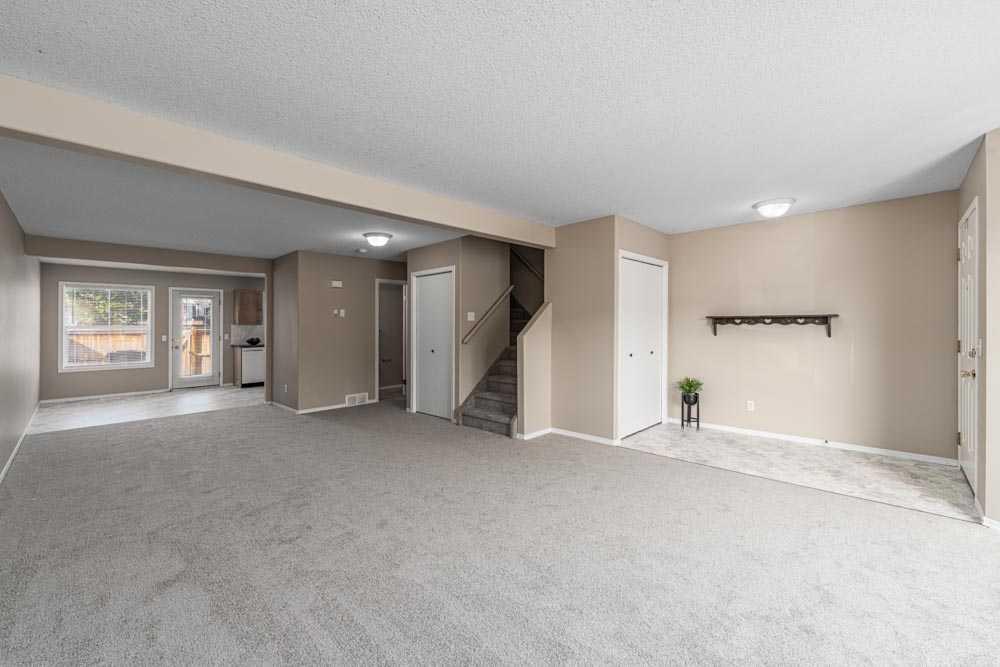 1405 Eagleview Place, High River. Great value for the new buyer! 3-bedroom, two-storey townhouse featuring 1,428 sq. ft. of thoughtfully designed living space over two levels. This residence is great for families, investors or individuals requiring additional space. The main floor boasts new carpet flooring and freshly painted walls, trim, and doors, contributing to a modern and pristine atmosphere. The spacious living room connects seamlessly with a functional kitchen equipped with new lino flooring, 3 new white appliances with a 3 year warranty , ample cabinetry, and a ceiling fan for enhanced comfort. Adjacent to the kitchen, the dining area provides a welcoming environment for family meals or entertaining guests. The upper level includes three sizable bedrooms, each designed for flexibility and comfort, complemented by a full bathroom to accommodate household needs. Outdoor amenities feature a fenced backyard, suitable for children, pets, or private gatherings during warmer months. An unfinished basement offers additional storage solutions and potential for future development. Two dedicated parking stalls ensure convenience, the affordable condo fees contribute to budget-conscious ownership. This property represents notable value a unique opportunity at this price range. Whether you are a first-time buyer, expanding household, or investor, this townhouse warrants consideration.