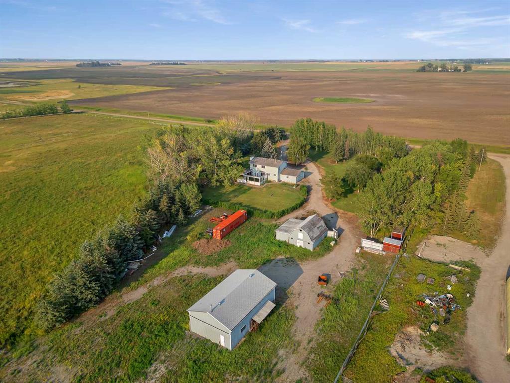18.82 Acreage, Rectangular lot, great property with house Barn and Shop. The 2 story 2192 Sq feet house with 4 bedroom, 3 full bath. Main floor has Living room, family room, Office, Kitchen, dinning room, laundry, and 3 pcs bath. Living room has fire place, and patio door to the deck, with cover hot tub and sauna (As-is) . Main floor office has built in desk, and oak panels. Country style kitchen with lots of white cabinets. Upstairs 4 bedrooms has Primary room with 4 pcs ensuite, and walk in closet, and other 3 bedrooms are good size, and 4 pcs main bathroom. Bedrooms has new carpets, and main floor has wood flooring. Workshop has compressor (as-is) for mechanically enthusiast, Barn and storage, Well water + Garage has 2 potable extra water tanks. Backyard has lot of trees, partially fenced and many more. Nearby by school in Chestermere, and close to Glenmore trail, heather and glen golf course.