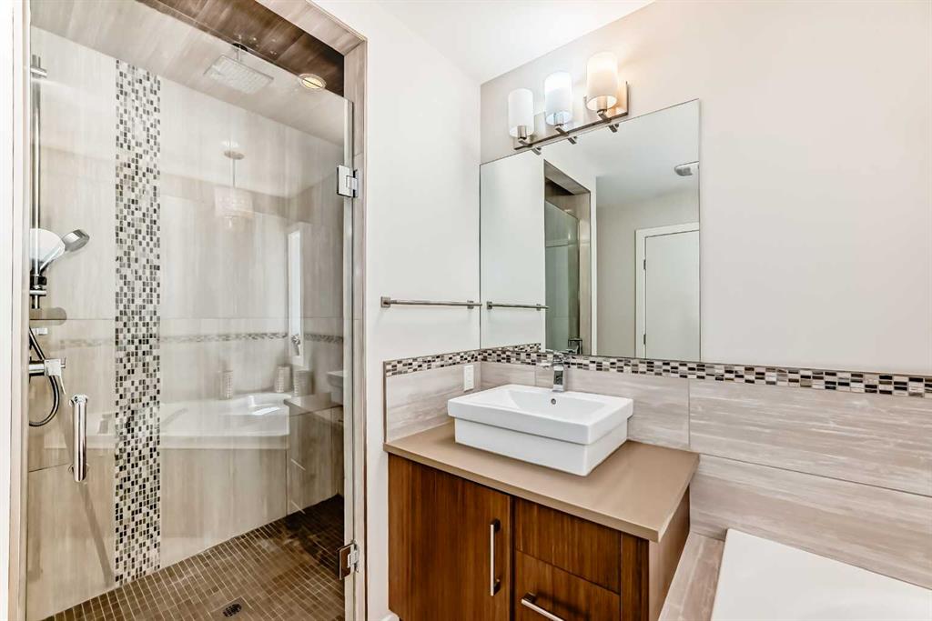 Welcome to this stunning 3-storey fourplex house, quietly nestled on a peaceful side street in the highly sought-after Kensington community. Enjoy the best of inner-city living, just steps from the Bow River, LRT, top-rated restaurants, cozy coffee shops, and the vibrant energy of Kensington Village. This exceptional home offers a total of 2,523 sq.ft. of living space (1,943 sq.ft. RMS + 580 sq.ft. developed basement) and is ideal for professionals, families, or investors. You\'re also perfectly situated near Downtown Calgary, SAIT, the University of Calgary, and more. The main level showcases a sleek open-concept design featuring a warm natural gas fireplace, spacious dining area, and a chef’s kitchen with premium quartz countertops, custom cabinetry, and elegant laminate flooring—perfect for both everyday living and entertaining guests. On the second level, you’ll find two generous bedrooms, including a primary suite with a walk-in closet and a luxurious 5-piece spa ensuite complete with a jetted tub. The third-floor loft offers flexible living space, including a bonus room, an additional bedroom, a full bathroom, and a large private balcony—perfect for relaxing evenings or enjoying your morning coffee. The fully finished basement features a media room, 4th bedroom, full bathroom, and plenty of storage. Outside, the professionally landscaped backyard offers a private oasis—ideal for barbecuing and entertaining on long summer nights. This home truly delivers the perfect blend of location, lifestyle, and luxury. A must-see opportunity!
