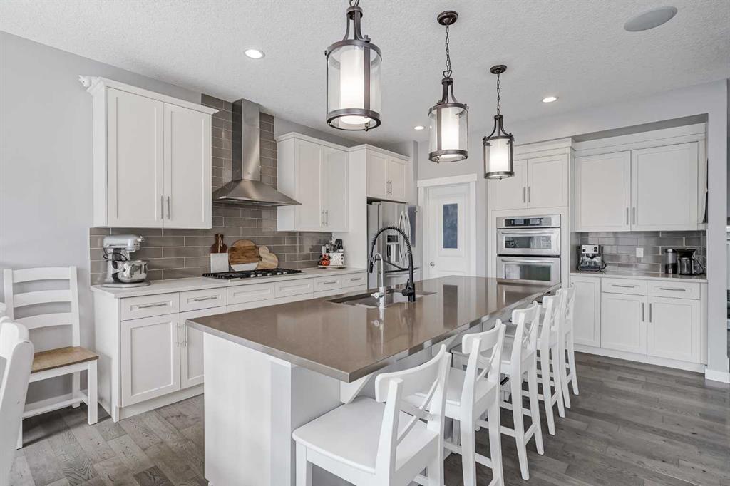 Open House on Saturday, October 18th from 2pm -4pm. This beautifully upgraded 2,418 sq ft home by Homes by Avi sits on a quiet pie lot at the end of a cul-de-sac, steps from a playground in the heart of Nolan Hill. The main level features 9-foot ceilings, hardwood floors, abundant natural light, and a built-in sound system. The upgraded gourmet kitchen is a standout with a massive 9-foot quartz island, dual Silgranite sinks, stainless steel appliances including a 36-inch gas cooktop, built-in double wall ovens, and 42-inch cabinetry. The great room centers around a gas fireplace with coffered ceilings, and there’s a versatile front flex room ideal for a home office. A spacious mudroom with a built-in locker and a rare side entrance adds to the home’s functionality.