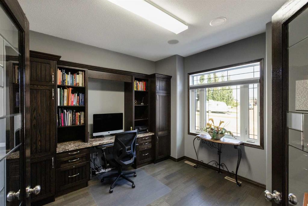 Experience luxury living at its finest in this custom-built, over 4,000 sq. ft. fully finished bungalow in Blackfalds! Designed for comfort, style, and entertaining, this home boasts no rear neighbours, breathtaking views, and both a double front attached heated garage plus a huge detached heated garage with alley access and RV parking. Inside, enjoy 9-ft ceilings, triple-pane windows, in-floor heating, and expansive natural light. The main level features a spacious kitchen with walk-in pantry, large island, stainless steel appliances, and separate dining area, plus a luxurious master suite with private deck access, grand walk-in closet, and spa-inspired ensuite with jetted tub and heated tile floors. The living room impresses with a two-sided stone fireplace flowing into the all-season heated sunroom, perfect for year-round enjoyment of the views. The lower level is a true entertainer’s dream, featuring a double-insulated media/studio room, 3 additional bedrooms, and a wet bar with cozy fireplace. With ample storage and direct access to the patio and beautifully landscaped backyard, it’s perfect for hosting gatherings, enjoying summer activities, or letting pets roam freely. Additional highlights include air conditioning, hardwood floors, and a fantastic neighbourhood. This bungalow delivers exceptional craftsmanship and features rarely found in Blackfalds, offering a lifestyle of space, luxury, and convenience.
