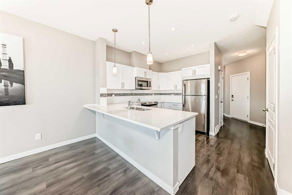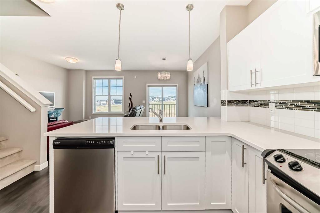 Welcome to one of the largest floor plans in the beautifully maintained Sonoma complex, located in the picturesque northwest community of Sage Hill. This exceptional home backs east onto a serene ravine with expansive green space, complete with walking and biking paths right at your doorstep. The east ravine location offers spectacular sunrise views from all three floors! The main floor features a 2-piece powder room, a versatile open den/dining area, and an elegant kitchen with quartz countertops, stainless steel appliances, and a breakfast bar. The kitchen overlooks a spacious dining area and an open living room, where large windows flood the space with natural light and provide access to a balcony with breathtaking ravine views. Stylish vinyl flooring enhances the modern, airy feel of the open layout. Upstairs, you’ll find dual primary suites, each with walk-in closets, ceiling fans, and private ensuite bathrooms—one with a large shower and the other with a soaking tub. One of the bedrooms also enjoys unobstructed ravine views. For added convenience, the laundry room is located on the upper level. The bright, unfinished walkout basement includes a rough-in for plumbing and offers endless possibilities for customization. Step outside to a covered concrete patio with direct access to the ravine pathways. Central air Conditioning. Additional highlights include an attached single garage and plenty of visitor parking within the complex. Nearby, you’ll enjoy a variety of retail shopping, restaurants, and cafés, along with quick access to Shaganappi Trail, Stoney Trail, and other major roadways.