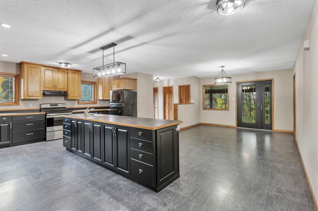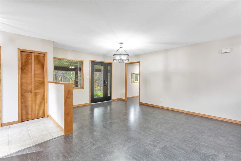 Only minutes from Rocky, located on a quiet no-exit road with easy access to Hwy 11, this 8 acres is private and beautifully landscaped. The property offers a peaceful rural lifestyle surrounded by mature trees and established perennial beds. The spacious 2,072 sq ft bungalow is all on one level and features a large entryway with excellent storage and a huge kitchen with a central island and walk-in pantry. Patio doors off the dining area lead to a covered deck overlooking the side yard. The living room is warm and inviting with cedar accents and a cozy wood stove. 3 bedrooms including the fully updated primary suite which features a 3-piece ensuite with a stunning custom tile shower, big walk-in closet and access to a private deck overlooking the pond. Recent upgrades include 2 new furnaces, a new hot water tank, fresh paint, and updated light fixtures throughout. The yard offers a picturesque fire pit area for gathering with family and friends and plenty of room for a large garden if you want to try out your green thumb. A second serviced site with gravel pad and concrete piles is ready for a mobile home if you are in need of a second residence. The property also boasts a 30x31\' heated metal-clad shop with a new 12x16\' overhead door, an attached 28x30\' three-sided lean-to on one side, a 17x30\' drive-through lean-to on the other side and a 16x23\' heated storage area in the back. There\'s also a big 23x90\' metal drive-through shelter, good for RVs or equipment storage. Small corrals complete the setup for hobby farming and livestock. This is the perfect combination of comfortable living, practical outbuildings, and tranquil country charm!