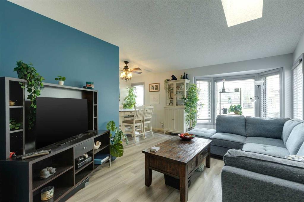As you step inside, you’ll immediately notice the stunning luxury vinyl plank flooring that flows through the main and upper level, providing a modern durable finish. The main floor is a bright and inviting space, highlighted by a spacious living room featuring a west-facing bay window and skylight to fill the home with natural light all day long. The kitchen is large and functional with plenty of cupboard and counter space to spread out, and it flows seamlessly into the dining area, making it perfect for entertaining.