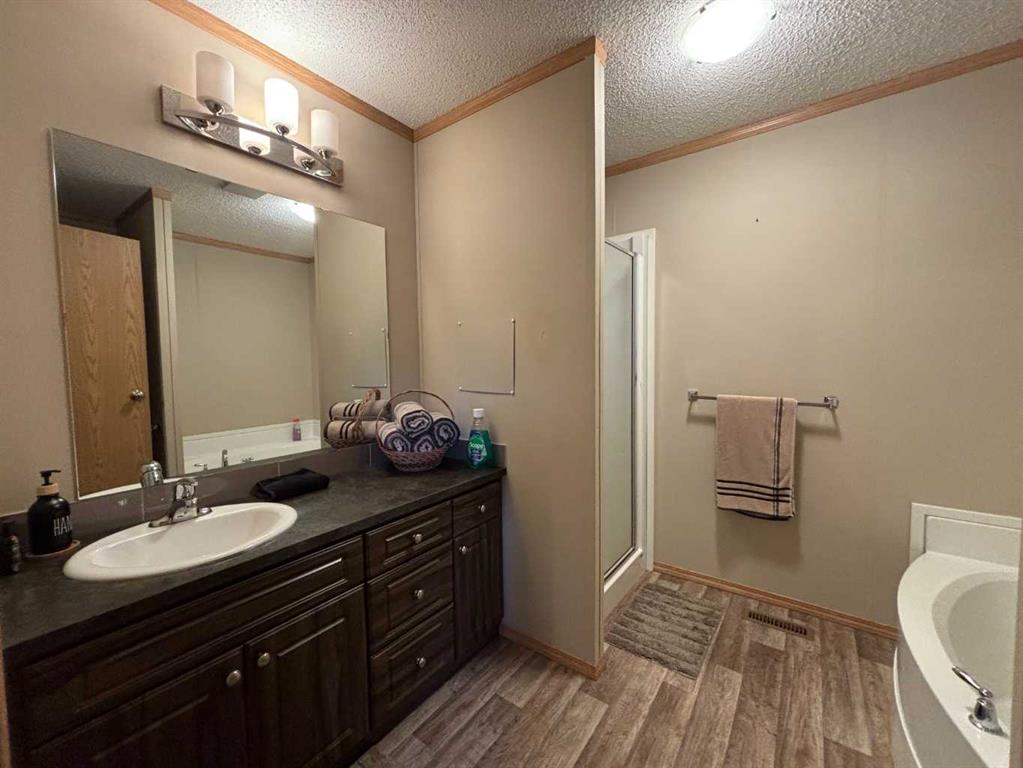 \"2016 HOME AND 30\'X22\' GARAGE !!!!\" This home offers 3 bedrooms, 2 full bathrooms , beautiful kitchen with large island with power and plenty of cabinets, huge living room and separate laundry room. Chocolate brown cabinets blend well with the large windows complimentary countertops. The large Primary bedroom is on one end of this home and has its own 4 piece bathroom with garden tub and separate shower. The other 2 roomy bedrooms are on the other end of this home as well as the second full 4 piece bathroom. Kitchen , living room and dining area make up the midsection of this home and are open to each other with patio doors in the living room leading onto a huge 42\'x10\' deck. Also on the property is a 30\'x 22\' detached garage with plenty of room for your vehicle and work area. The lot is nicely landscaped with mature fruit trees. All appliances will be staying with this package . This property would make an ideal first home for those just starting out , ideal for those looking to downsize, decent investment as a rental property and ideal for a roommate situation with 2 separate front entrances . Home is move-in ready .
