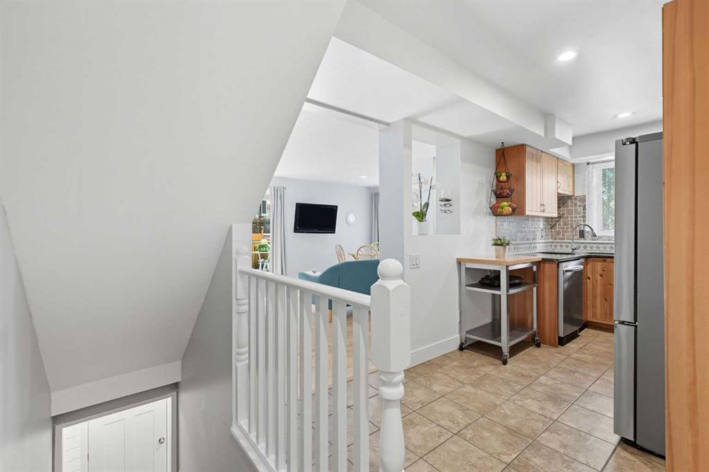 Welcome to this charming 2-storey corner unit with a fully finished basement, on a quiet street in Killarney, thoughtfully updated both inside and out. Step into a bright west-facing main level with new paint, carpet, baseboards, and patio doors (2020). This updated kitchen has brand-new appliances (2025) and the living room features an updated hearth (2016) for the wood fireplace. Upstairs, this home has a newly renovated bathroom with a subway tile surround (2021). The basement adds extra living space with stylish shiplap walls (2021) leading into the 3rd bedroom and updated bathroom. Need more? This home even has central A/C (2018).