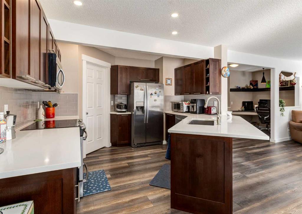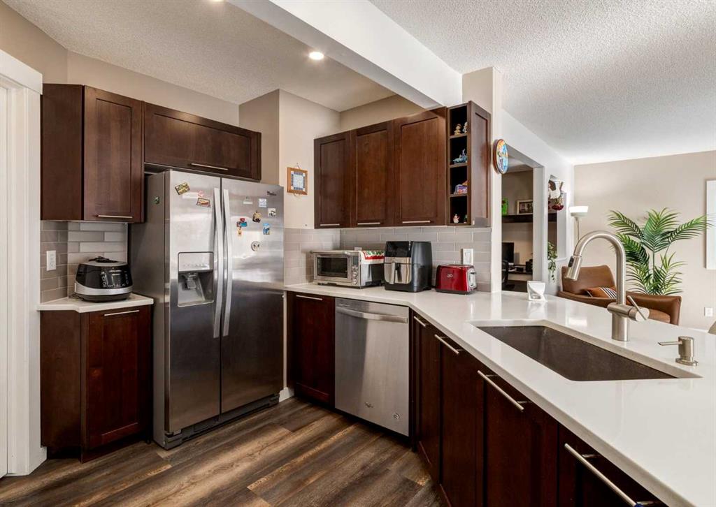 Welcome to 442 Citadel Drive NW - a beautifully maintained family home perfectly situated beside a sprawling park with a bright, south-facing backyard. Combining warmth, function, and timeless style, this inviting two-storey home reflects years of thoughtful upkeep and tasteful improvements that make it feel both modern and comfortable. From the moment you arrive, it’s clear this home has been loved and cared for. The exterior is neat and welcoming, with charming curb appeal and a sense of quiet pride. Inside, natural light fills every corner of the open main floor, creating a cheerful and airy living environment ideal for everyday life. The front entry flows effortlessly into the living, dining, and kitchen areas, where large windows frame peaceful views of the backyard and park beyond. The kitchen is stylish and practical, featuring soft-close cabinetry, quartz countertops, a modern undermount sink, and elegant lighting. French doors open directly onto the back patio - perfect for morning coffee or summer barbecues while children or pets play safely nearby. The layout also includes a convenient built-in desk nook, providing a versatile space for remote work or homework. Upstairs, the home continues to impress with a bright and spacious bonus room anchored by a cozy gas fireplace - a welcoming place to unwind with family after a long day. The primary suite offers comfort and privacy, complete with an ensuite bathroom and walk-in closet. Two additional bedrooms and a full bath complete the upper level, providing plenty of space for family or guests. Over the years, the home has been carefully updated and continuously maintained, blending contemporary touches with long-term reliability. The attention to detail is evident in the upgraded flooring, baseboards, lighting, and refreshed kitchen and bathrooms - all chosen to maintain a cohesive, modern look. The location couldn’t be better: right next to a park, within walking distance to both public and Catholic schools, and with a bus stop just steps away. Whether you’re a young family searching for a move-in-ready home or simply looking for a well-kept, welcoming property in a peaceful neighbourhood, this Citadel gem offers the perfect balance of comfort, charm, and everyday practicality - all wrapped in a beautifully maintained modern feel.