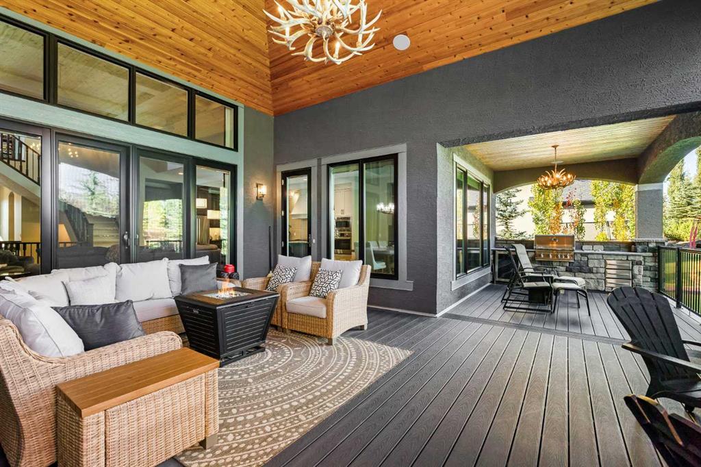 Perfectly located on a quiet cul-de-sac in the prestigious community of Watermark, where luxury meets functionality in this beautifully designed estate property. This exceptional residence offers the perfect blend of comfort, elegance, and thoughtful upgrades throughout — including newer (2022) air conditioning units, Hunter-Douglas roller blinds, and an oversized triple car garage with plenty of space for vehicles, storage, and outdoor gear. Inside, the chef’s kitchen is a showstopper — equipped with a gas range stove, newer (2025) dishwasher, ceiling-height cabinetry, and an impressive granite island perfect for hosting and daily family life. A walk-through pantry offers added storage and convenience, connecting directly to the mudroom, with convenient additional fridge and freezer, and garage entry. Adjacent to the kitchen, the eating nook features custom built-ins and a wine fridge, making it a spacious and practical space for dining and hosting gatherings. The nook flows effortlessly onto the deck, providing a stunning indoor-outdoor connection. Stepping outside your eyes are drawn toward the warmth of the wood burning fireplace and the seamless transition to the outdoor oasis. The expansive back deck is an entertainer\'s dream, featuring a built-in BBQ and bar fridge, and cozy sitting area. There is a grassed yard with plenty of room for family activities or pets. A charming shed adds functionality to the outdoor space. The living room is equally impressive with its vaulted ceilings, floor to ceiling windows, custom fireplace, and elegant mantle — all designed to frame breathtaking views of the landscaped yard and extend the main floor\'s open concept feel. The primary suite, located on the main level, features a spa-like 5-piece ensuite with dual vanities, a soaking tub, steam shower, and private water closet. The massive walk-in closet comes complete with custom built-ins, offering a boutique-style dressing experience. Also on the main level, you\'ll find a den/flex-room, convenient laundry room with shelving and storage and a 2pc powder room. Upstairs, a flex space offers versatile functionality — ideal for a home office, media room, or secondary family room. A generously sized bedroom upstairs with its own 4-piece ensuite makes it perfect for guests or family members. The fully developed basement extends the living space with a spacious family and games room, an ideal setup for movie nights or entertaining. There’s a dedicated exercise room, a bedroom with a private 3-piece ensuite, an additional bedroom, and another 4-piece bathroom — all finished with the same quality and care found throughout the home. The lower level also features a generous storage area and additional flex room. From high-end finishes and functional design to serene outdoor living, this Watermark gem offers a lifestyle of comfort, luxury, and timeless appeal. Don’t miss the opportunity to make this extraordinary home yours.