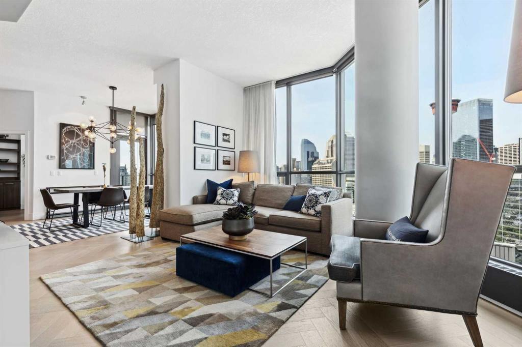 This renovated sub-penthouse at Keynote One delivers. Towering above the city, executive living showcases panoramic views of the Rocky Mountains and glittering downtown skyline.