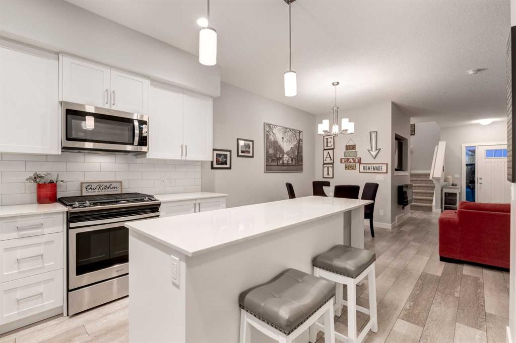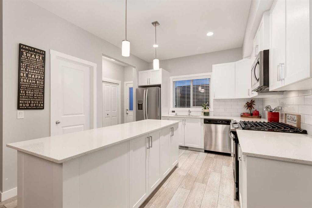 **OPEN HOUSE - Saturday Nov 8 from 2-4 PM ** WELCOME to this IMMACULATE 2-Storey ROW HOME offering 2,002 sq ft of beautifully developed living space in the SOUGHT-AFTER community of MIDTOWN! Set on a CORNER LOT with NO CONDO FEES, this home blends STYLE, FUNCTIONALITY, and COMFORT, complete with a FULLY DEVELOPED BASEMENT and an INSULATED DOUBLE DETACHED GARAGE. Step inside to a BRIGHT and INVITING Foyer with 9’ KNOCKDOWN CEILINGS, NEUTRAL Colours and sleek LAMINATE FLOORING that flows into the OPEN Living Room-perfect for relaxing or entertaining. The Dining Area comfortably fits your dinner party or weeknight meals, and flows into a CHEF-INSPIRED Kitchen featuring White Cabinetry, QUARTZ Counters, SS Appliances including a GAS COOKTOP, Whirlpool Fridge, Fresh White TILE Backsplash, and a central Island with Breakfast Bar. A dedicated PANTRY and a well-designed Mudroom with access to the backyard add to the everyday convenience, along with a stylish 2pc Bath on the main level. The upper level hosts 3 Bedrooms, including a large Primary Suite that’s FLOODED with NATURAL Light, a WALK-IN Closet and a PRIVATE 3pc EN-SUITE featuring a Glass door SHOWER. Two more well-sized Bedrooms share a 4pc Bath with a SOAKER TUB, and an UPPER FLOOR LAUNDRY adds everyday ease. The FULLY FINISHED BASEMENT provides even more space with a large REC ROOM, a 4th BEDROOM with a WALK-IN-CLOSET, a full 4pc Bath, and a Utility Room-great for guests, teens, or extended family. Step outside to your EAST-FACING BACKYARD and enjoy morning coffee on the PATIO and weekend BBQs, a DOUBLE GARAGE that\'s DRYWALLED, INSULATED, and even ROUGHED-IN for a heater + an ADDITIONAL Gravel Parking Pad!! Located in the family-friendly Midtown community, you’re just steps from parks, walking paths, a pond, schools, shops, and more. Easy access to 8th Street and Deerfoot makes commuting a breeze. This is more than a home - it’s a TURNKEY LIFESTYLE in one of Airdrie’s best new neighborhoods. BOOK YOUR SHOWING NOW!