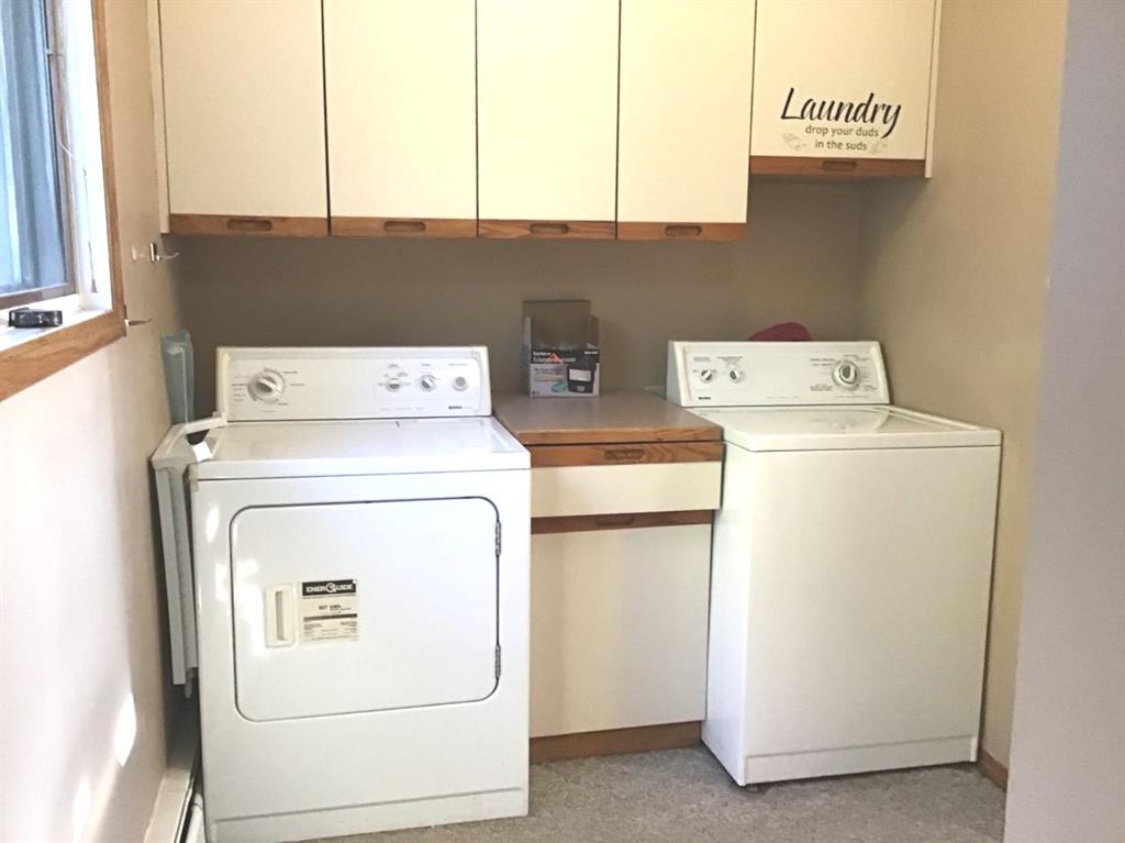 All appliances are included: refrigerator, stove, dishwasher, washer, dryer, microwave, window coverings, water softener, and boiler.