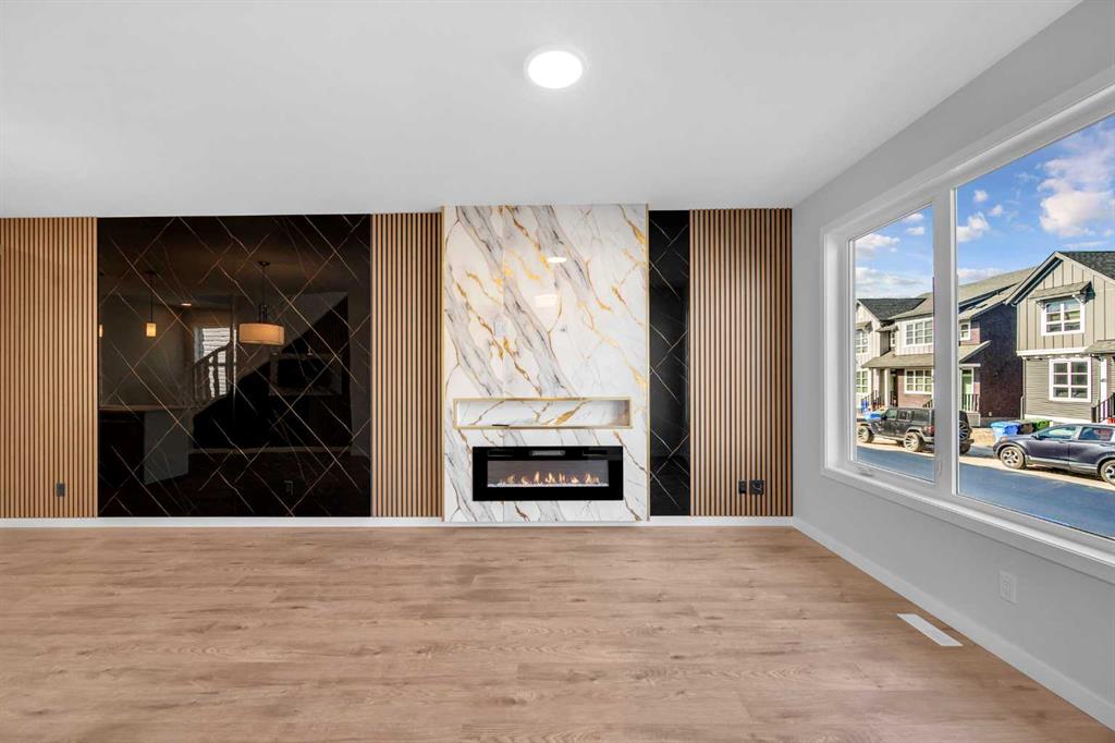 The main floor sets the tone with an OPEN-CONCEPT layout and designer finishes throughout. A bedroom with a full 3-piece bath across the hall makes this level ideal for guests or multi-generational living. The spacious living area is enhanced by FEATURE WALLS, an ELECTRIC FIREPLACE, and luxury vinyl plank flooring, creating a warm yet sophisticated atmosphere.