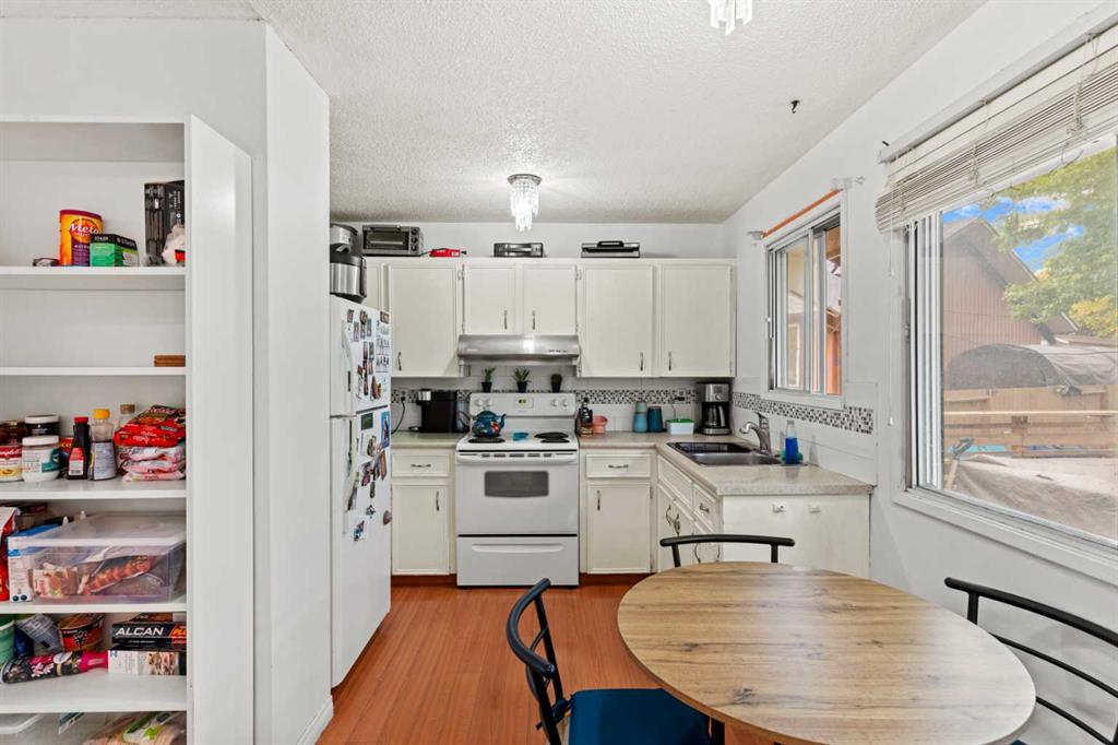 The layout is functional and inviting, with laminate flooring, large windows, and plenty of natural light throughout. Outside, you’ll find a private fenced yard, a deck for outdoor entertaining, and a parking pad for two vehicles.