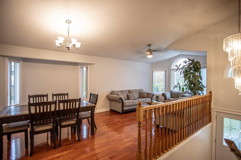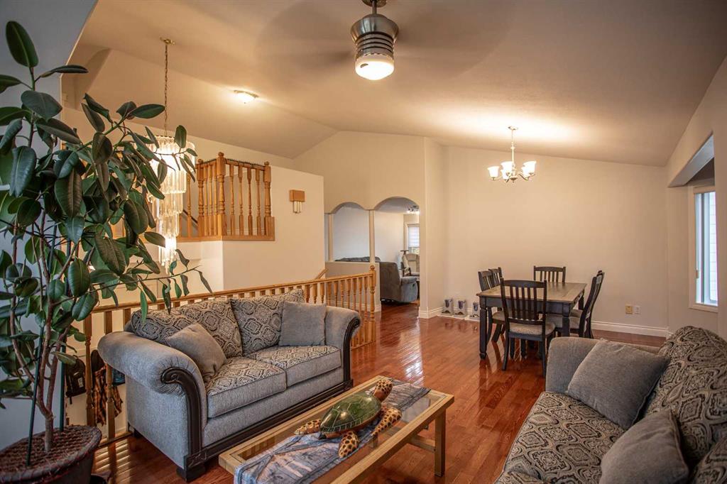 A Stunning home with lots of space and privacy, nature at your fingertips mere steps from the back door. With 3 parks within walking distance this home is in a great location! It\'s truly the \"creme de la creme\" of homes! You will be proud to drive up to this distinguished home boasting over 1900 sq. ft. of main floor living space with a walk-out basement. A spacious tiled foyer with soaring vaulted ceiling welcomes you to a bright sun-filled Living Room that showcases a bay window ensuring an abundance of natural light to filter in on the gleaming hardwood flooring. The statuesque pillars showcase the ultimate Formal Dining Room with a handsome tiled fireplace, offering a cozy ambiance on the cooler evenings. Delightful South-western evening sun streams into the beautiful Kitchen, which is dressed in wood cabinetry and boasts a generous amount of counter space, stainless steel appliances, and plenty of cupboards and pantry space. The garden door opens to a fabulous new two-tier deck to enjoy a late evening dinner party under the Northern skies, or to relax and listen to the birdsongs echoing from the backdrop of the majestic trees. The fully fenced 1/2 acre yard is perfect for your little ones, and 4-legged family members. On the east side of the home you will find 2 GREAT sized Bedrooms and the main bath with a tub/shower combo. Quietly tucked away a few stairs up is the MOST AMAZING Primary Suite that offers a walk-in closet and en-suite. The lower level sports another 2 fantastic Bedrooms , 4 pc Bathroom, a MASSIVE storage area, and Laundry Room. Just add some flooring to the huge Family Room, and it\'ll be the ideal place for teen hang-outs, and family movie nights. Did we forget to mention the attached heated garage, central air, and infloor heat ? This STUNNING home awaits your arrival .