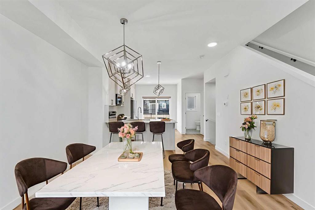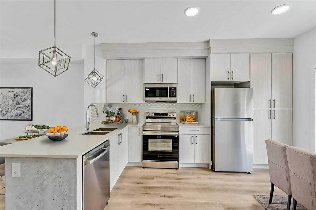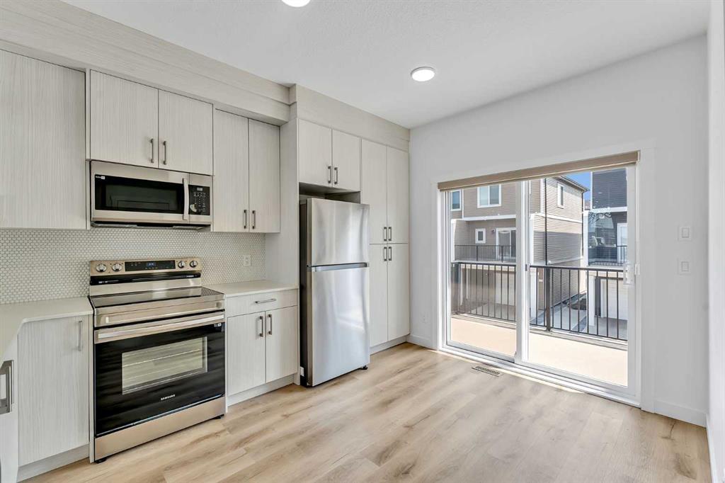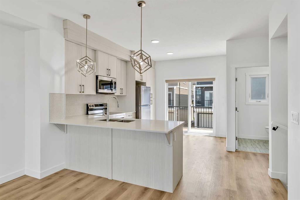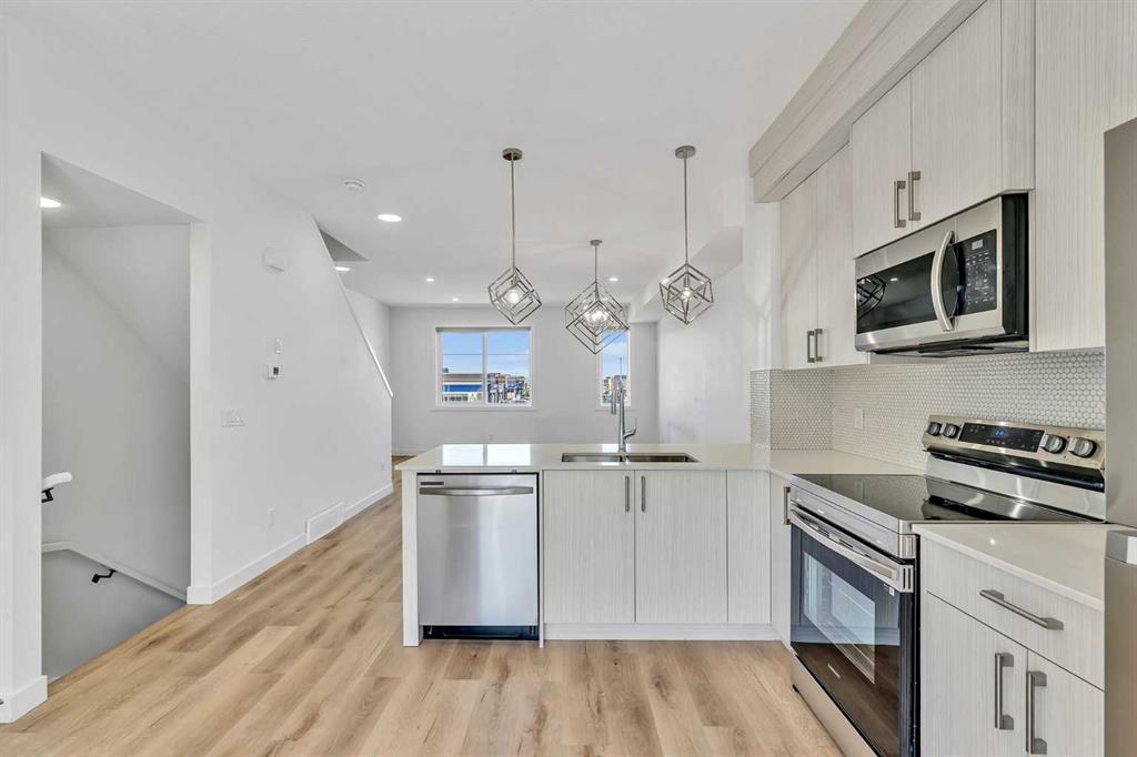 CORNER UNIT TOWNHOME! LOW CONDO FEE! CLOSE TO YYC AIRPORT! SHOPPING AND TRANSIT NEARBY! WELCOME to this BRAND NEW 3 STOREY TOWNHOME IN THE MOST SOUGHT AFTER COMMUNITY OF CORNERSTONE! This TOWNHOME is LOCATED in CORNERSTONE\'S NEWEST TOWNHOME COMPLEX CALLED THE CENTRO! This TOWNHOME FEATURES LUXURY VINYL PLANK FLOORING, TEXTURED KITCHEN CABINETS, QUARTZ COUNTERTOPS, STAINLESS STEEL APPLIANCES AND AN ATTACHED TANDEM SINGLE CAR GARAGE (FIITS 2 VEHICLES). The MAIN FOYER is CONVENIENTLY LOCATED NEXT TO YOUR GARAGE. On the SECOND LEVEL you will find your LOVELY UPGRADED KITCHEN OVER LOOKING YOUR HUGE DINING AND LIVING ROOM (FEATURING 9 FT CEILINGS!). The KITCHEN ITSELF IS DESIGNED ELEGANTLY WITH STORAGE IN MIND AS WELL AS CONVENIENCE with a KITCHEN ISLAND, CABINETS TO THE TOP OF THE CEILING AND A MICROWAVE HOOD FAN! Behind the KITCHEN IS YOUR HUGE BALCONY THAT IS PERFECT FOR BBQING! There is also an ADDITIONAL 2PC BATHROOM ON THE MAIN FLOOR! On the THIRD LEVEL, you will find 3 BEDS (ONE OF WHICH IS THE GRAND MASTER BEDROOM FEATURING A WALK-IN CLOSET AND A 3 PC ENSUITE!) PLUS AN ADDITIONAL 4 PC BATHROOM AND YOUR LAUNDRY AREA! THE LAUNDRY AREA BEING ON THE THIRD LEVEL MAKES IT VERY CONVENIENT FOR LAUNDRY DAYS! This ENTIRE TOWNHOME AND TOWNHOME COMPLEX IS BUILT TO MAKE LIFE EASIER, WHETHER ITS THE THIRD FLOOR LAUNDRY OR THE CONVENIENCE OF BEING IN WALKING DISTANCE TO CHALO FRESHCO, BMO, TIM HORTONS AND MANY MORE LOCAL DELIGHTS! BOOK YOUR SHOWING TODAY!