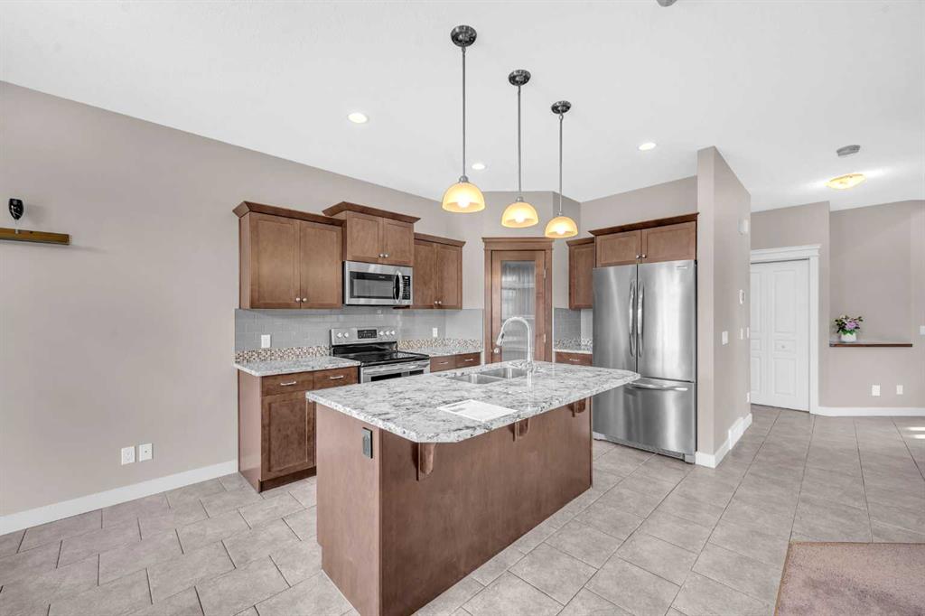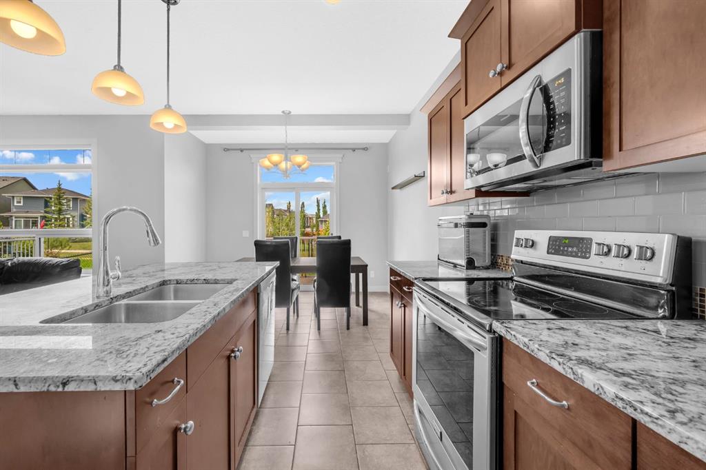 Backing onto Walking Paths and Park, Nestled in the Heart of Evanston! Welcome to the perfect family home in Evanston, beautifully upgraded and ideally located backing onto green space and walking paths! This inviting home offers numerous features, including central air conditioning, a gas fireplace, tiled flooring, and 9-foot ceilings throughout the main floor. You\'re welcomed by a spacious front entrance with ample closet space. The open-concept main floor features a modern kitchen with custom dark wood cabinetry, granite countertops, high-end stainless steel appliances, a large corner pantry, and a generous island — perfect for gathering with family and friends. The dining area is ideal for entertaining, with sliding doors that lead to your deck and a landscaped backyard overlooking green space. A convenient guest powder room completes the main level. Upstairs, you’ll find three generously sized bedrooms, a full bathroom, and a convenient upper-level laundry room. The primary bedroom is a private retreat, complete with a spa-like ensuite and a walk-in closet. A bonus room offers a perfect space for movie nights, family games, or simply relaxing with loved ones. The professionally finished basement includes a large family room, an additional bedroom, a full 4-piece bathroom, and a storage area — perfect for guests or growing families. Enjoy warm summer days in comfort with central A/C, and take advantage of the low-maintenance landscaped backyard that opens directly onto green space. Located in a quiet and family-friendly area, just steps from a playground, off-leash dog park, and sports fields. You\'ll also be minutes away from all amenities,s including grocery stores, restaurants, pubs, and more. Don’t miss this one-of-a-kind opportunity, book your private showing today!