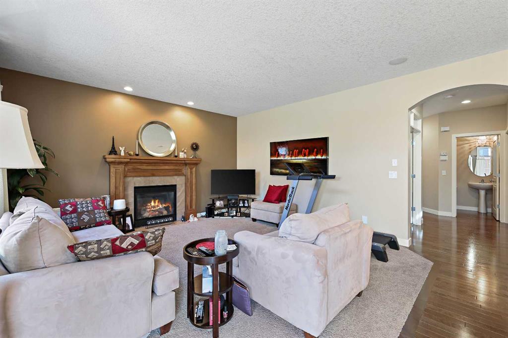 Meticulously maintained and upgraded, this home is filled with luxury touches throughout. The main floor boasts 9’ ceilings, rich hardwood flooring, and a versatile flex room—perfect as a formal dining room, office, or study. The spacious great room features a tiled gas fireplace with a wood surround and custom mantle, creating a warm and inviting centerpiece.