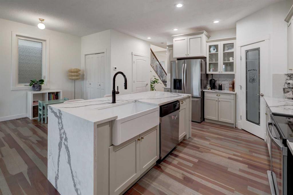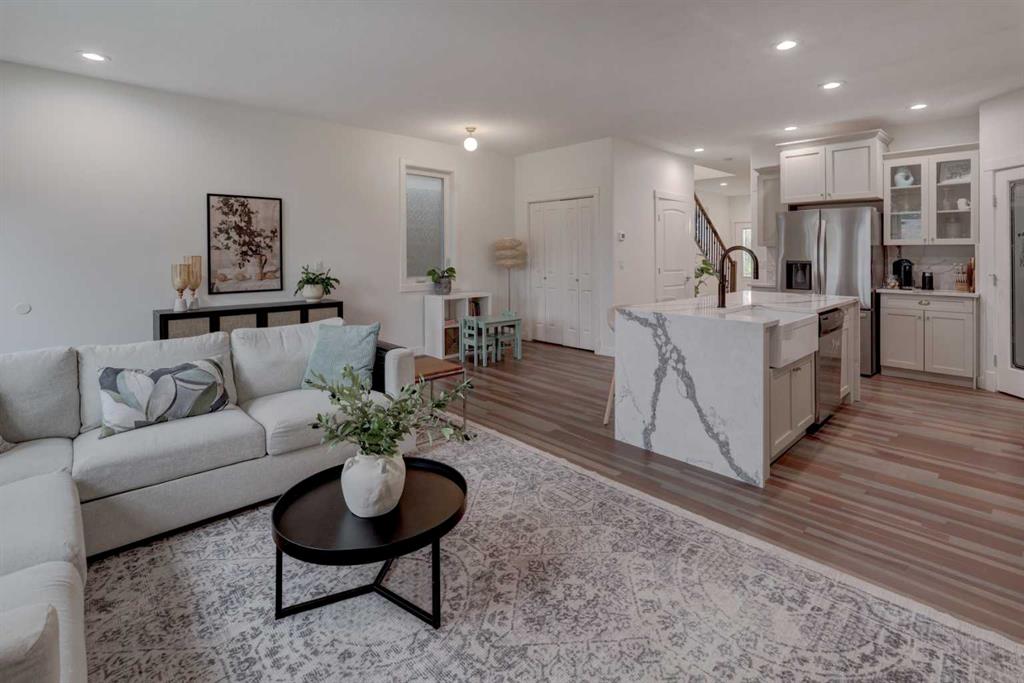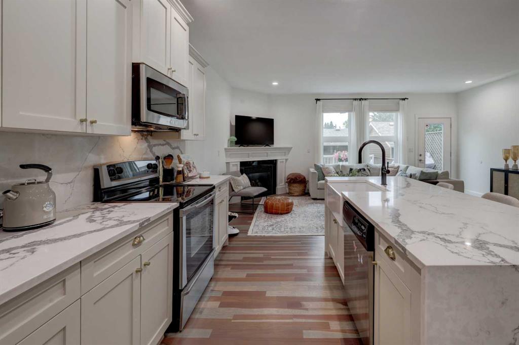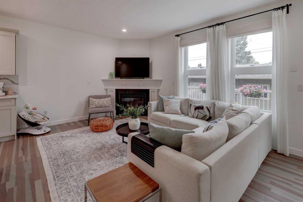 Welcome to this charming 4-bedroom, 3.5-bath home in the heart of Bowness! Just a 2-minute walk to the new Superstore, with excellent transit options, quick access to the C-Train, multiple schools nearby, and only two right turns to be on your way to the mountains—this location truly can’t be beat. The curb appeal is inviting with a full-length south-facing front patio and a freshly painted glass-panel front door, setting the tone for what awaits inside. Step in to an open floor plan filled with natural light from large windows, beautifully complemented by refinished hardwood floors (2021). The main floor features 9\' knockdown ceilings, a welcoming front dining area, and a cozy rear living room overlooking your private backyard. Step outside to your freshly stained deck, complete with a gas line for your BBQ—perfect for outdoor dining and entertaining. The low-maintenance yard provides plenty of space to relax or host gatherings, while the insulated double detached garage, just steps from the back door, offers built-in shelving and extra storage. The renovated kitchen (2021) is the heart of the home, showcasing an oversized waterfall quartz island with a deep farmhouse sink, refreshed cabinetry with new hardware, and a corner pantry for all your storage needs. The brand-new developed basement (Feb 2025) adds even more living space with a custom-built entertainment wall, a stylish wet bar, a fourth bedroom with walk-in closet, and a stunning 3-piece bath with a tiled stand-alone shower. The spacious utility room includes a full wall of built-in shelving, offering ample storage. Upstairs, the primary suite offers the perfect retreat with a 4-piece ensuite featuring a jetted corner tub and stand-alone shower, a spacious walk-in closet, and a private balcony with glass-paneled railing—an ideal spot to relax at the end of the day. Two additional bedrooms, a 4-piece bath, and convenient upper-level laundry with built-in cabinetry complete this level. Additional upgrades include a new A/C unit (2024) for summer comfort. Enjoy unbeatable access to downtown, University District, Bowness Park, Paskapoo Slopes, Calgary Farmers Market, city transit, and more! Don’t miss your chance to call this beautiful property home. Be sure to view the VIRTUAL TOUR LINK for interactive floor plans, hi-def photos, and a room-by-room virtual walkthrough.